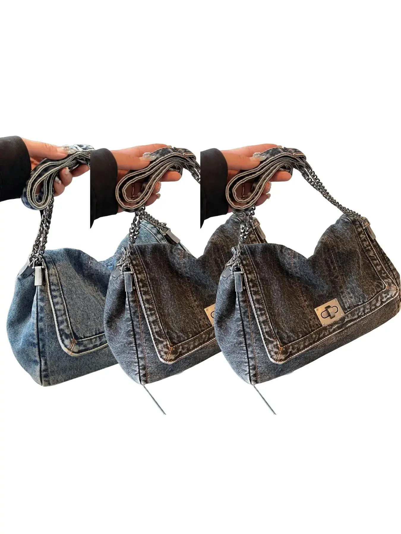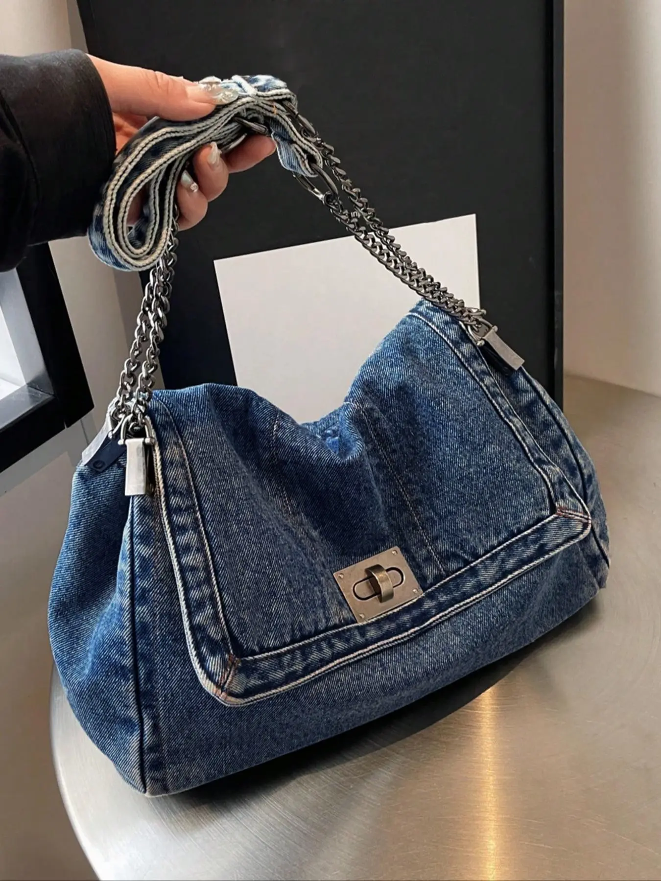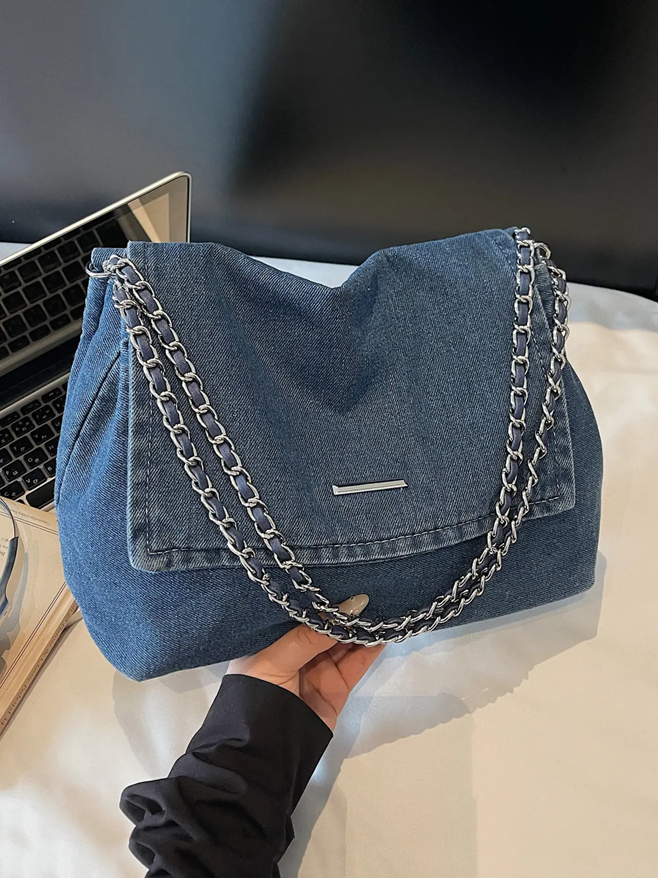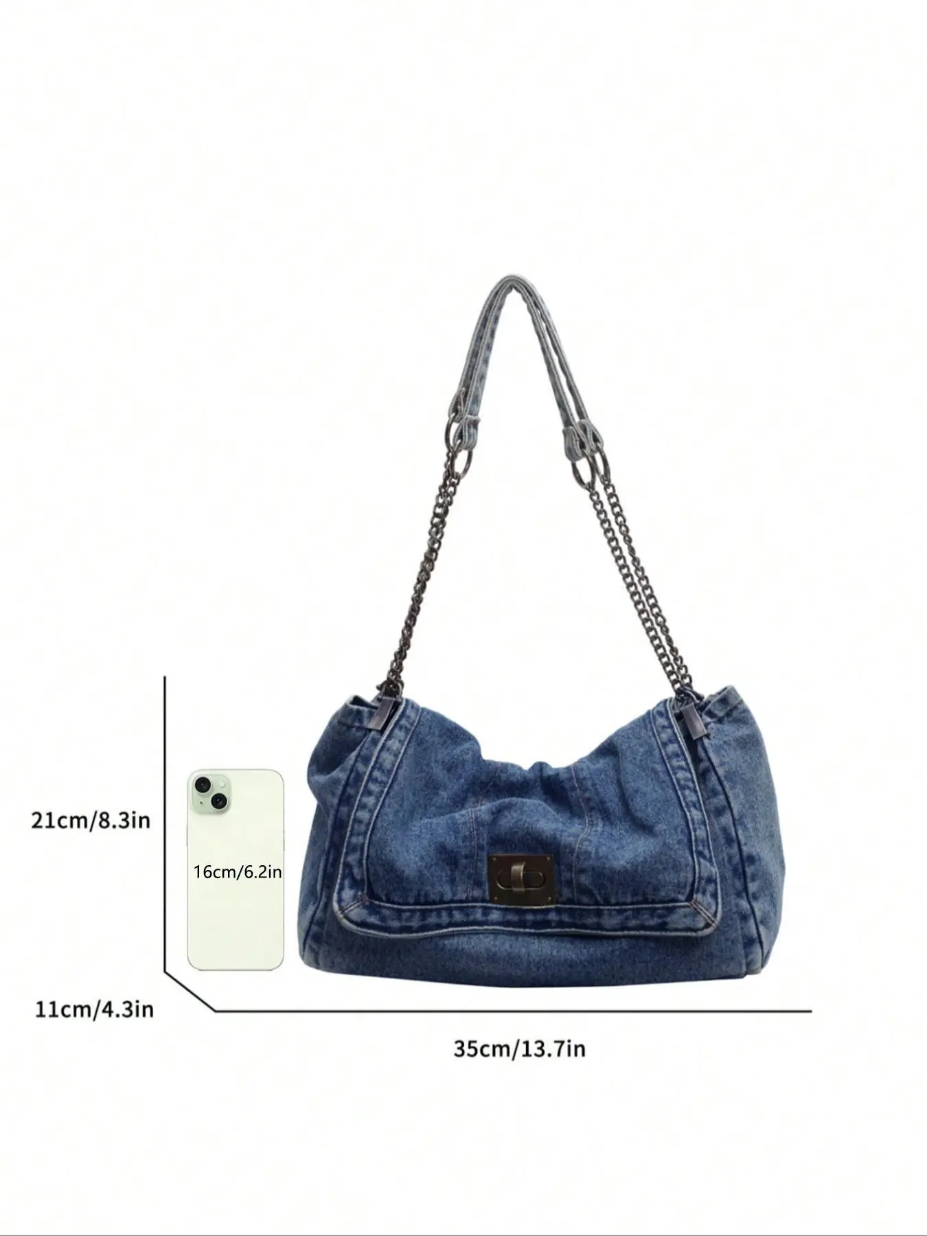 Super cute bag! The denim is sturdy and the chain strap adds a stylish edge. Perfect size for daily use—fits all my essentials without being bulky. I’ve already gotten compliments on it so many times. Great purchase!