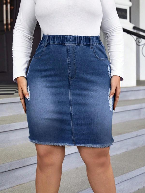 Women's Ripped Distressed Denim Skirt, Fashion Casual   Short Skirt for Daily Outdoor Wear, Ladies Bottoms for Summer
