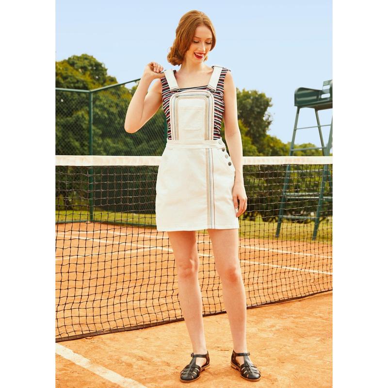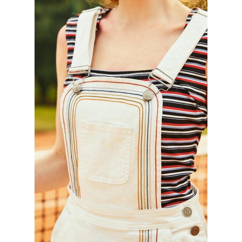 Sprinkle sweetness into your wardrobe with the Sweet as Pie Denim Skirtall Overalls in Marshmallow Bliss wash, featured in our ModCloth namesake label. The optic white denim hosts a delightful rainbow stitch detailing, complementing the whimsical design. Adjustable straps ensure a custom fit, making these skirtalls a dream for easy layering on breezy spring days. They’re the perfect pick for an adorable and carefree picnic look.