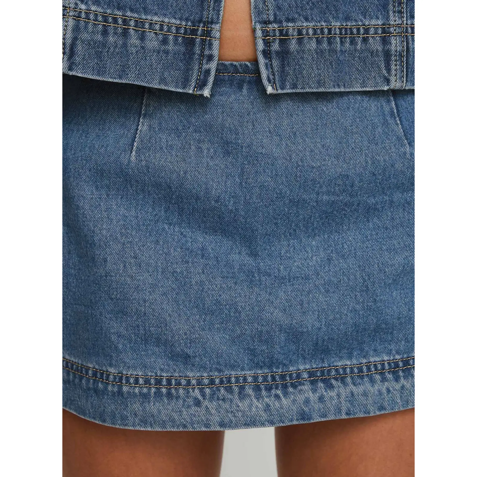 This is the only denim skirt that’s ever actually flattered my body type I have a slender man build and denim skirts often look really boxy and weird on me but this one is so cutesy and comfy. My current go to skirt !!