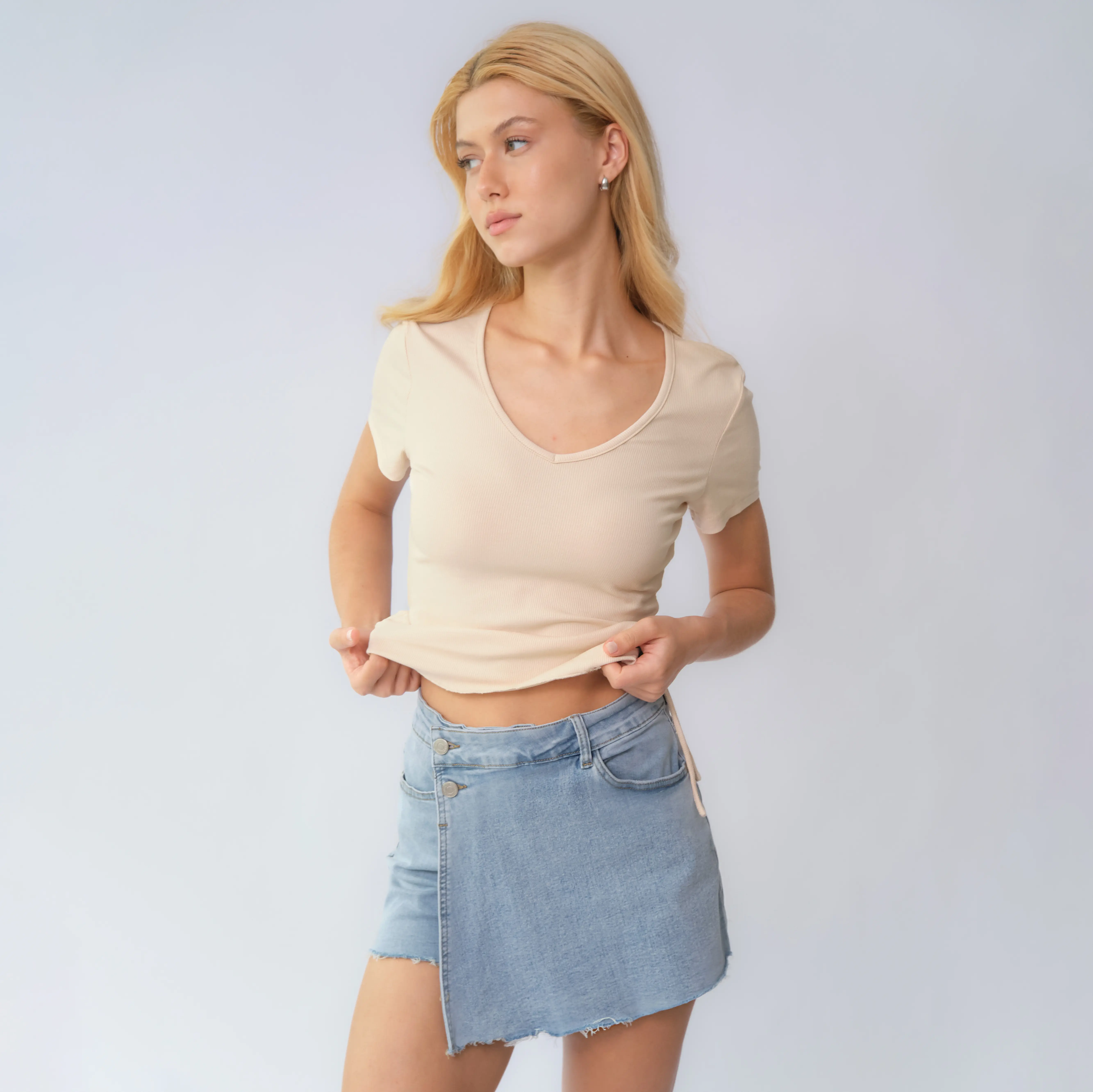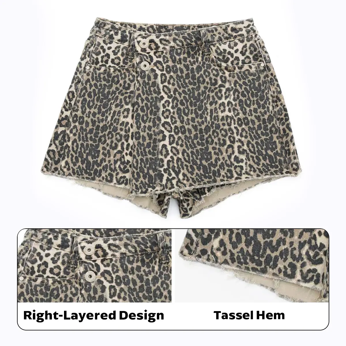 KatchMe Women's Leisure Layered High Waist Raw Hemline Denim Skorts
