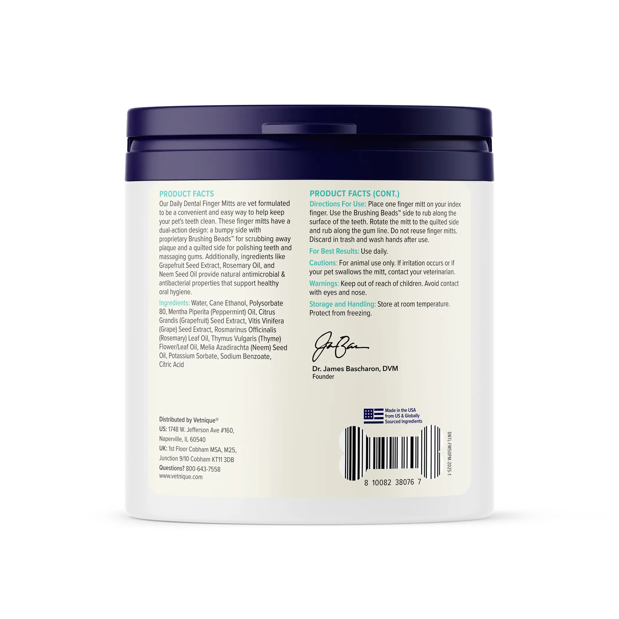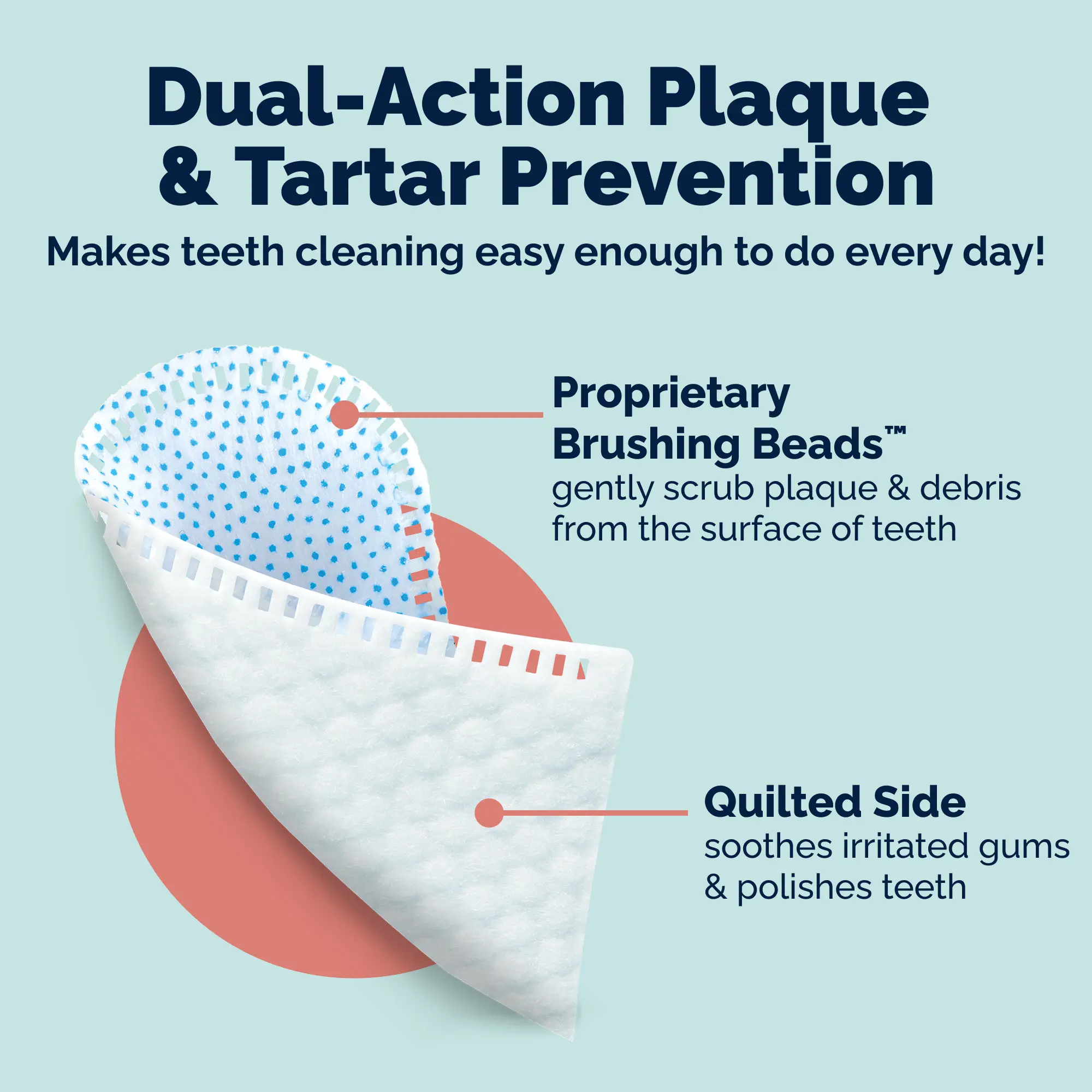 DentaBliss™ is vet-formulated to make it easy to refresh the breath™ of four-legged friends with convenient daily-use dog dental care! DentaBliss™ Daily Dental Finger Mitts make brushing dogs’ teeth a breeze with a slim, simple design compared to bulky dog toothbrushes. Our dual-action dog dental finger wipes use Brushing Beads™ to help gently scrub and polish for effective prevention of plaque and tartar on teeth for dogs’ daily dental health. Each pre-moistened dental wipe helps with breath freshening for dogs’ bad breath using natural ingredients that support a healthy oral microbiome. We vet-formulated our 100% cotton finger mitt for dogs of all sizes to support a convenient daily, non-toxic dog dental care routine that can keep your pet’s oral hygiene in check—without making things ruff for you!