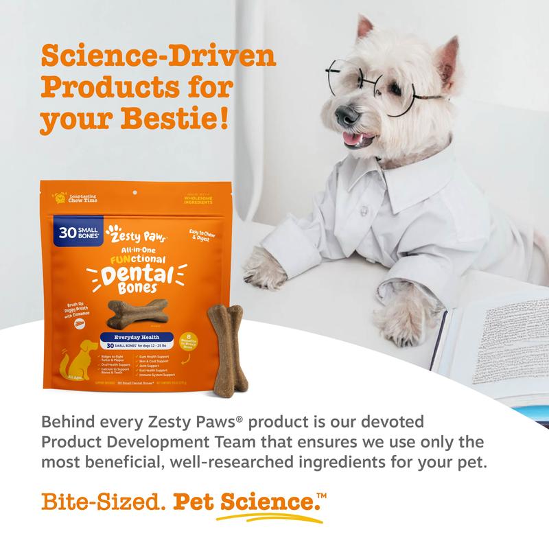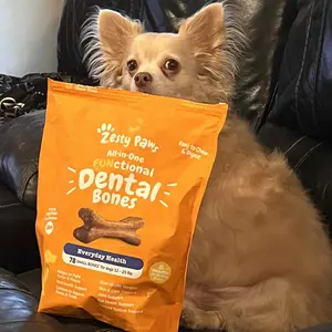 As a dog parent, it's only natural that you'd want to support Fido's chompers to give them a boost of Zest. But why stop at just a basic breath freshener that can't do a deep teeth clean for your dog? Go big with these All-in-One FUNctional Dental Bones! Oral health and fresh breath are just the beginning of what these bones can do!