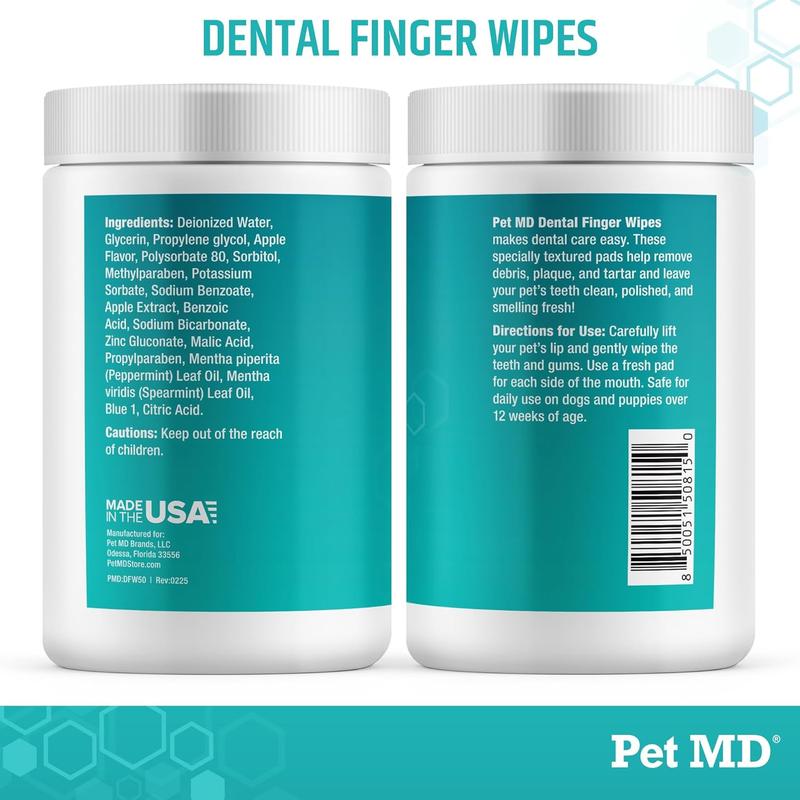 5. Pet MD Dental Finger Wipes for Dogs- Fresh Apple & Mint, 50ct