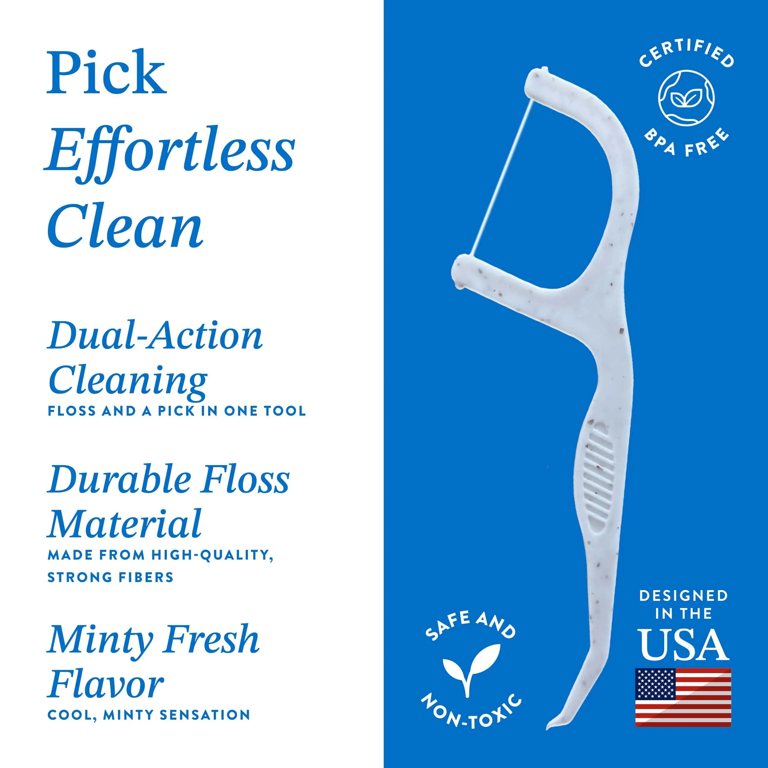 ·Convenient & Portable: Perfect for on-the-go oral care, our individually wrapped floss picks are easy to carry in your purse, bag or pocket. These eco friendly floss picks are designed for convenience without compromising on sustainability, making them perfect dental flossers for travel.