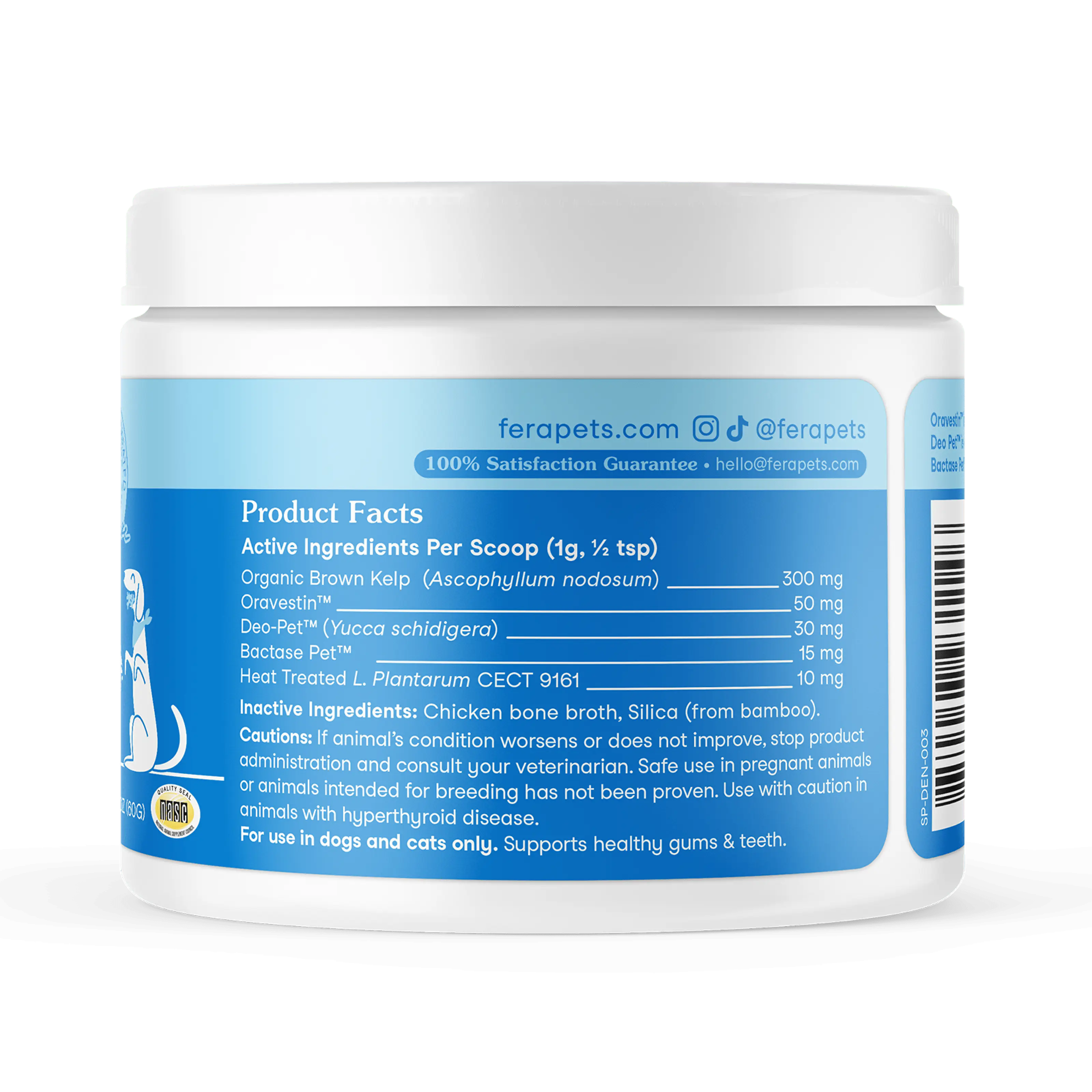My dog is allergic to many ingredients and usually has horrible breath. I bought Feral Pet dental because it doesn't contain the ingredients my dog is allergic to as an act of desperation, but skeptical of results. It's been almost a month and his bad breath has improved tremendously. I am back buying another jar.