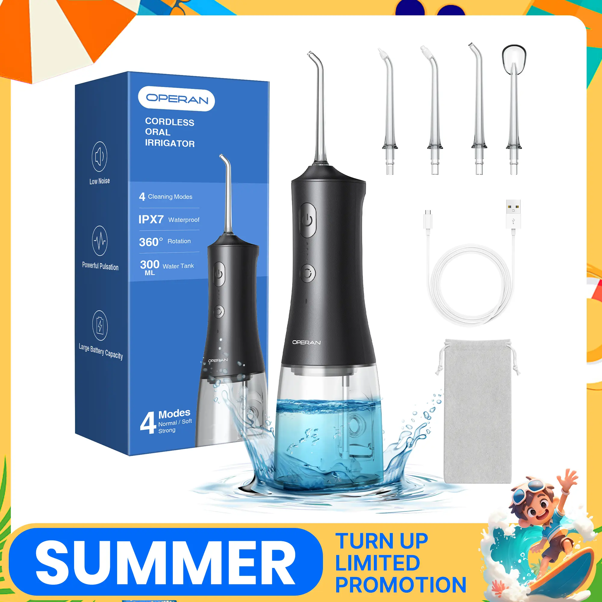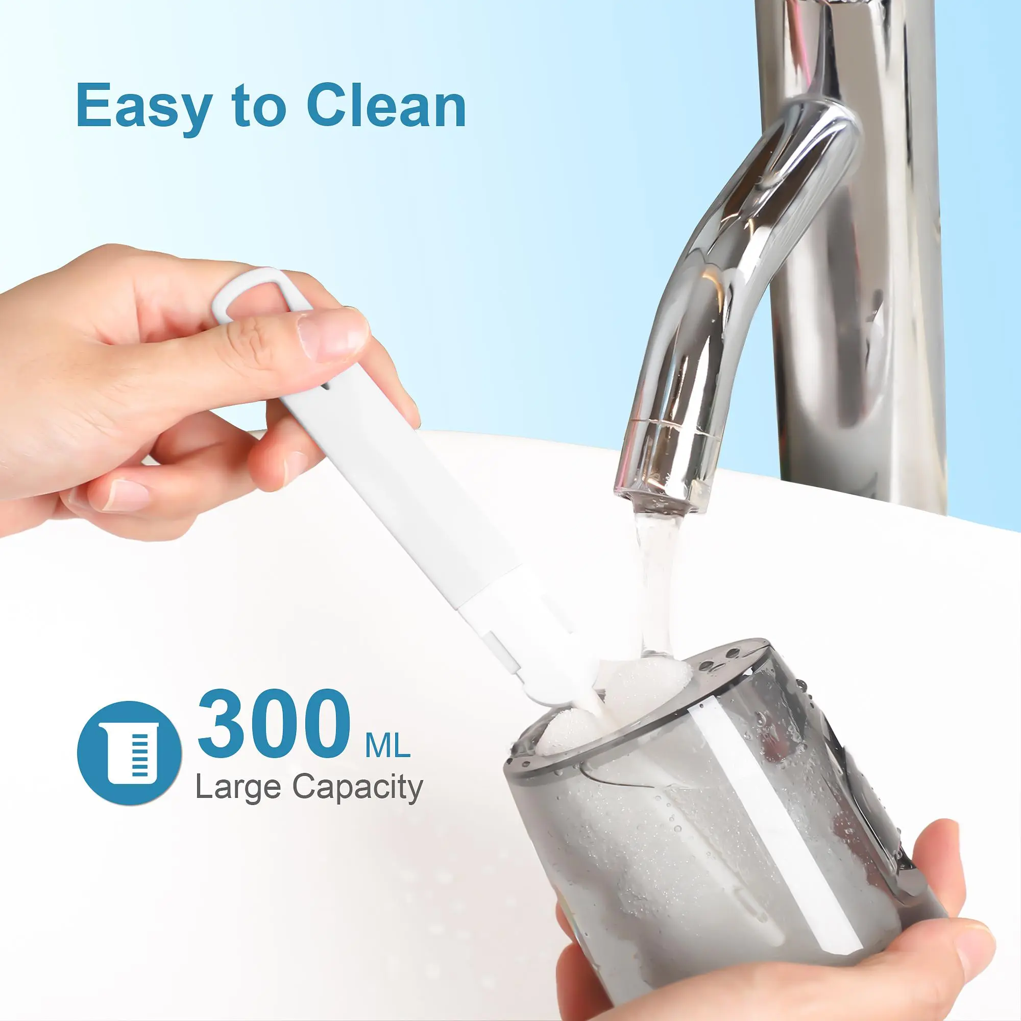 Large Capacity Water Tank and IPX7 Waterproof:The 300ml flosser tank is designed to meet the needs of a complete oral cleaning.