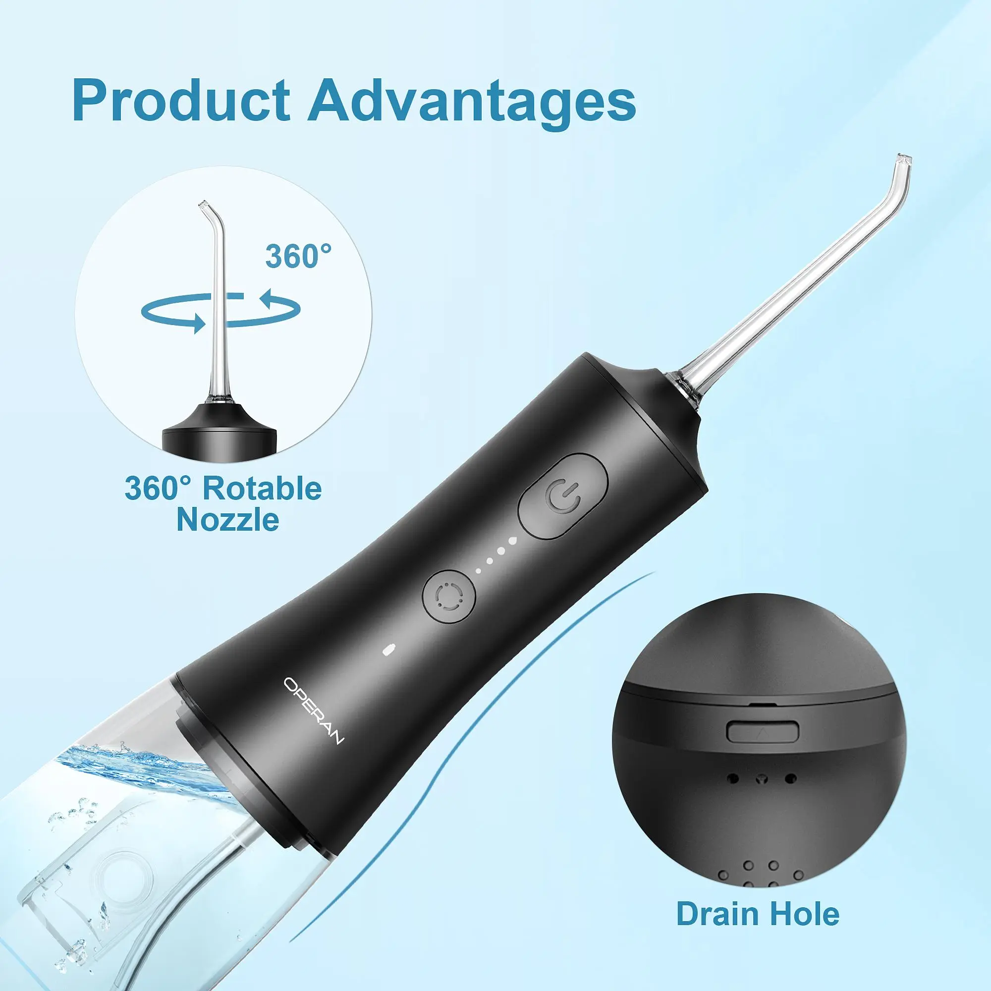 Operan water dental flosser cleans teeth 5 times better than traditional water dental flosser and can replace traditional floss picks with less damage to gums and teeth.