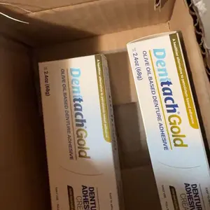 Received as scheduled. It's definitely an acquired taste. DONT USE ALOT🤮 Just dot it on(top denture) works better. Taken off not so bad. Make sure you alot of paper towels to remove leftover residue on gums. I'll repost more as the week goes. So far LOVE THIS BRAND. MY ONLY BRAND🫶