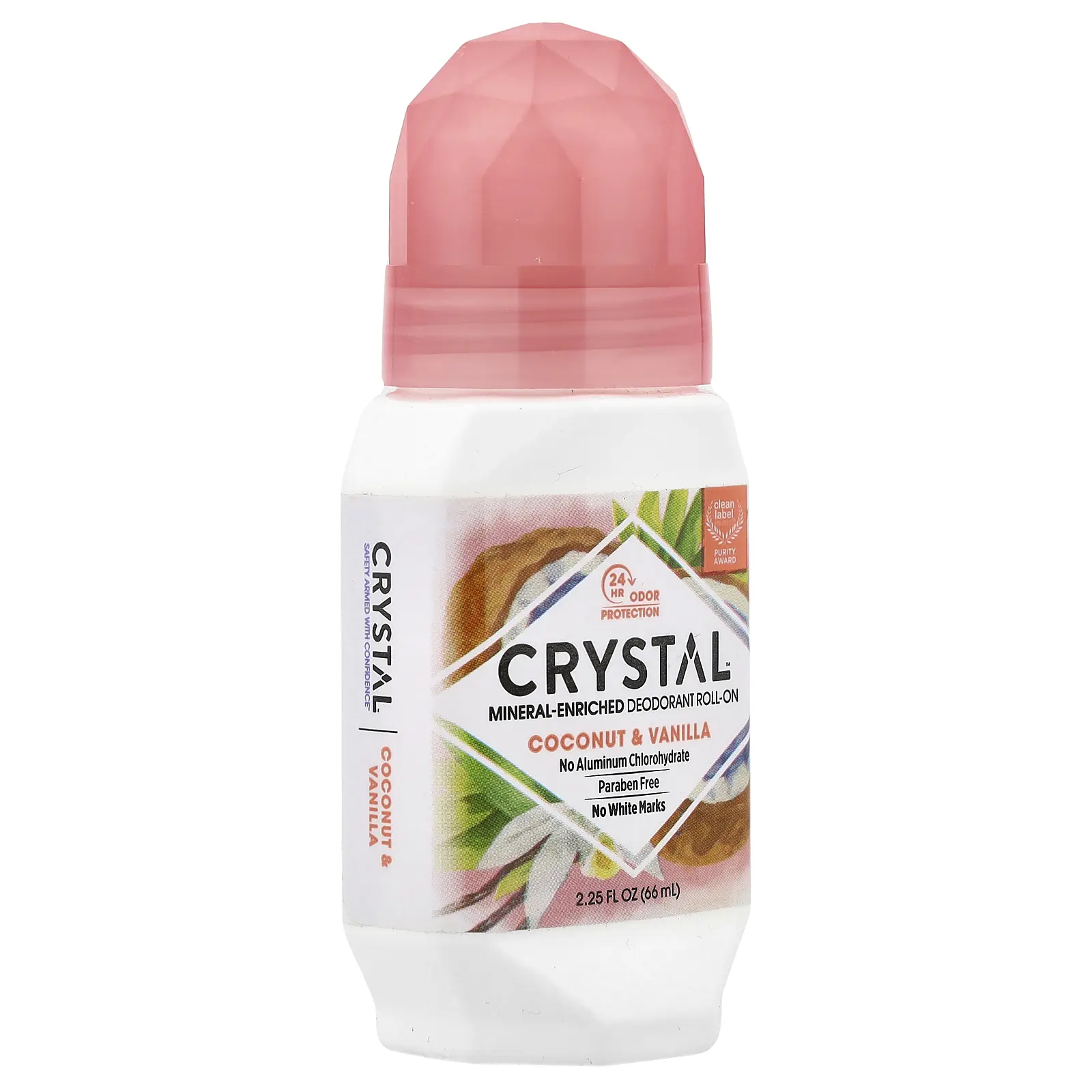 CRYSTAL Mineral-Enriched Deodorant Roll-On, Coconut & Vanilla, 2.25 fl oz (66 ml)