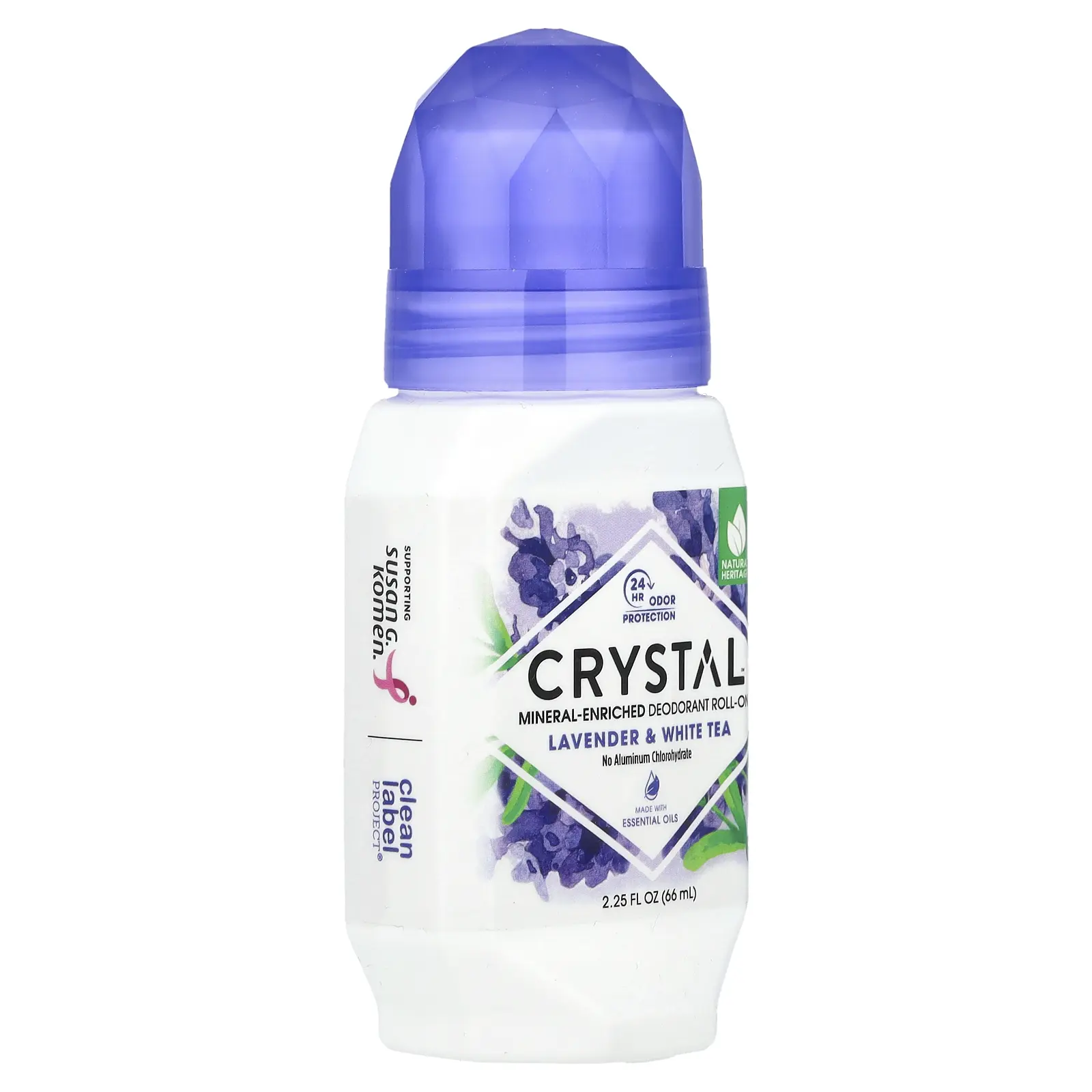 CRYSTAL Mineral-Enriched Deodorant Roll-On, Lavender & White Tea, 2.25 fl oz (66 ml)