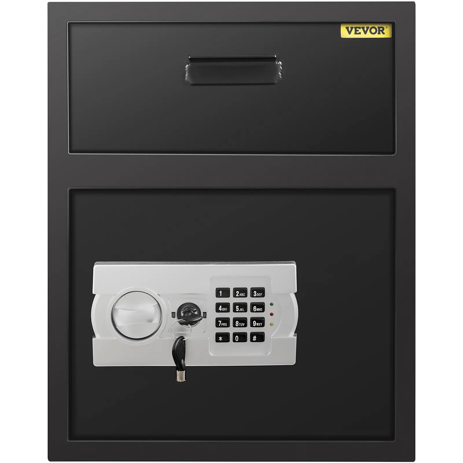• 【ELECTRONIC LOCK SYSTEM】 - With a reliable electronic lock system, the drop slot safe effectively keeps children and unauthorized users from gaining access. It can be programmed with two sets of codes and provides two override keys for emergency use.