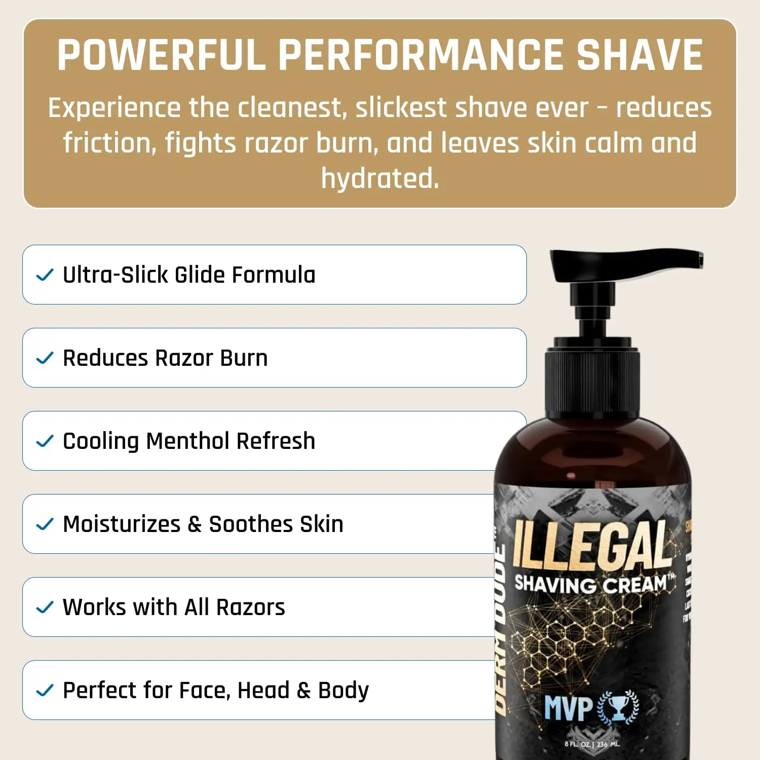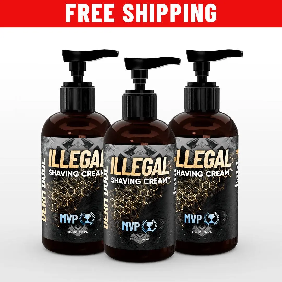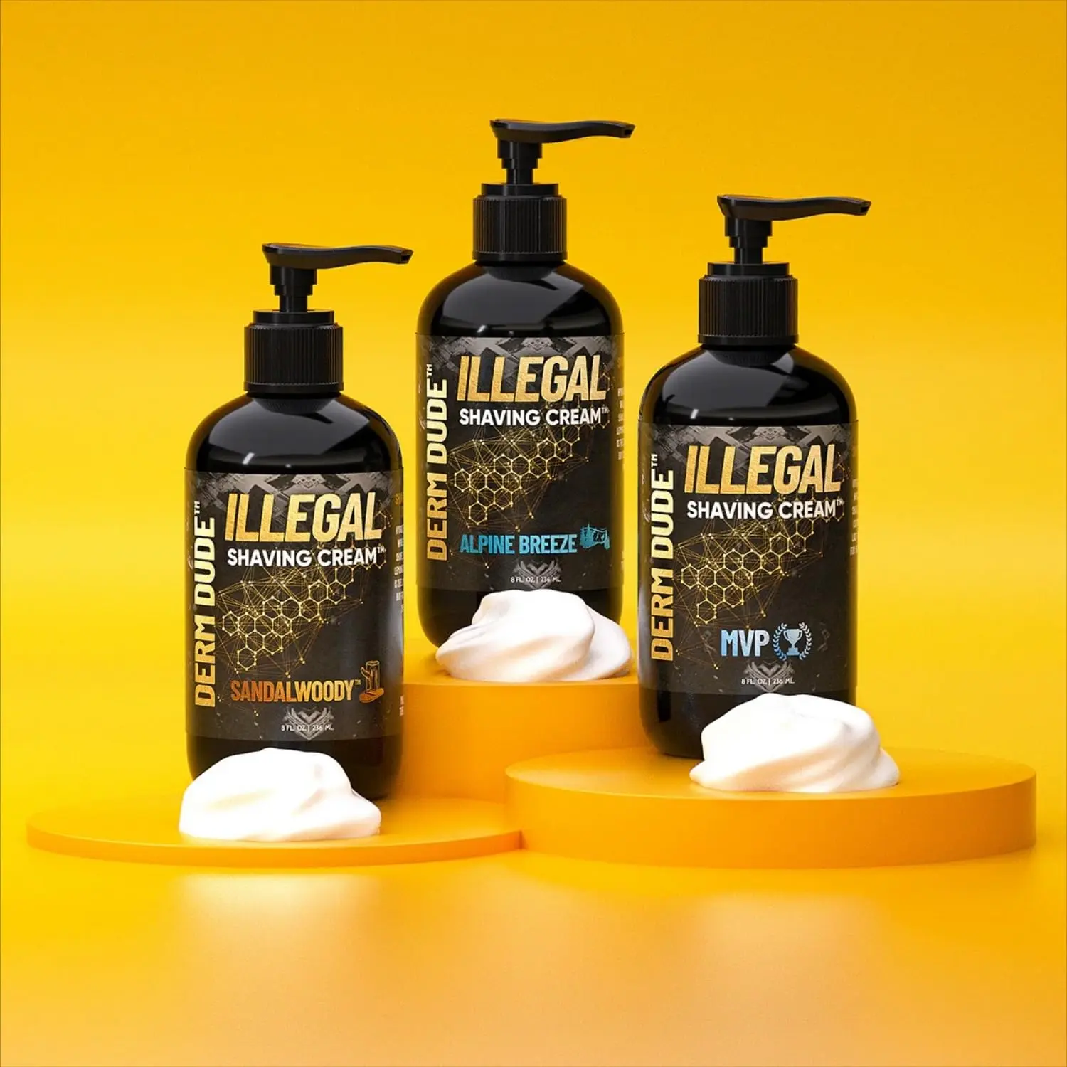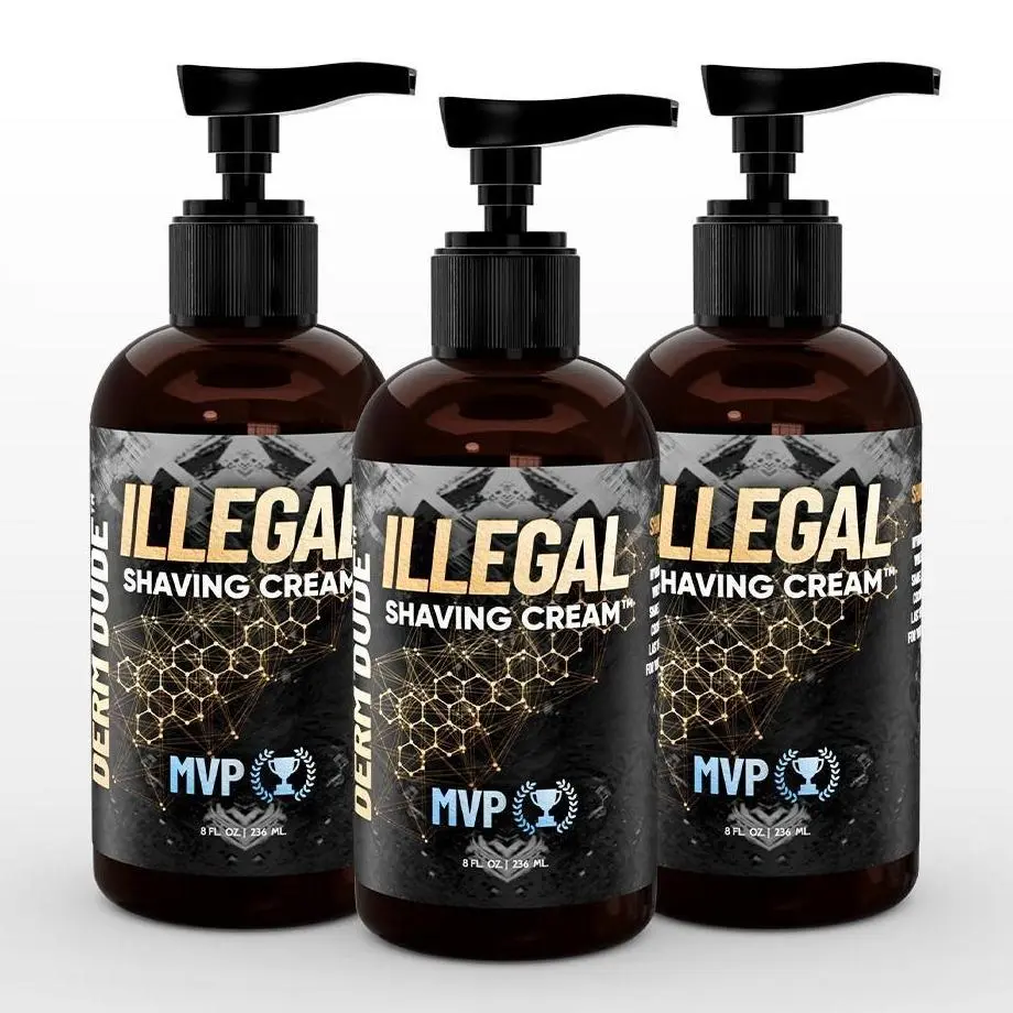Derm Dude Illegal Shave Cream for Men 3 Pack MVP Scent 8 FL OZ MAN-SIZE Non-Toxic Natural Ingredients Aloe Olive Oil Vitamin E Made in USA
