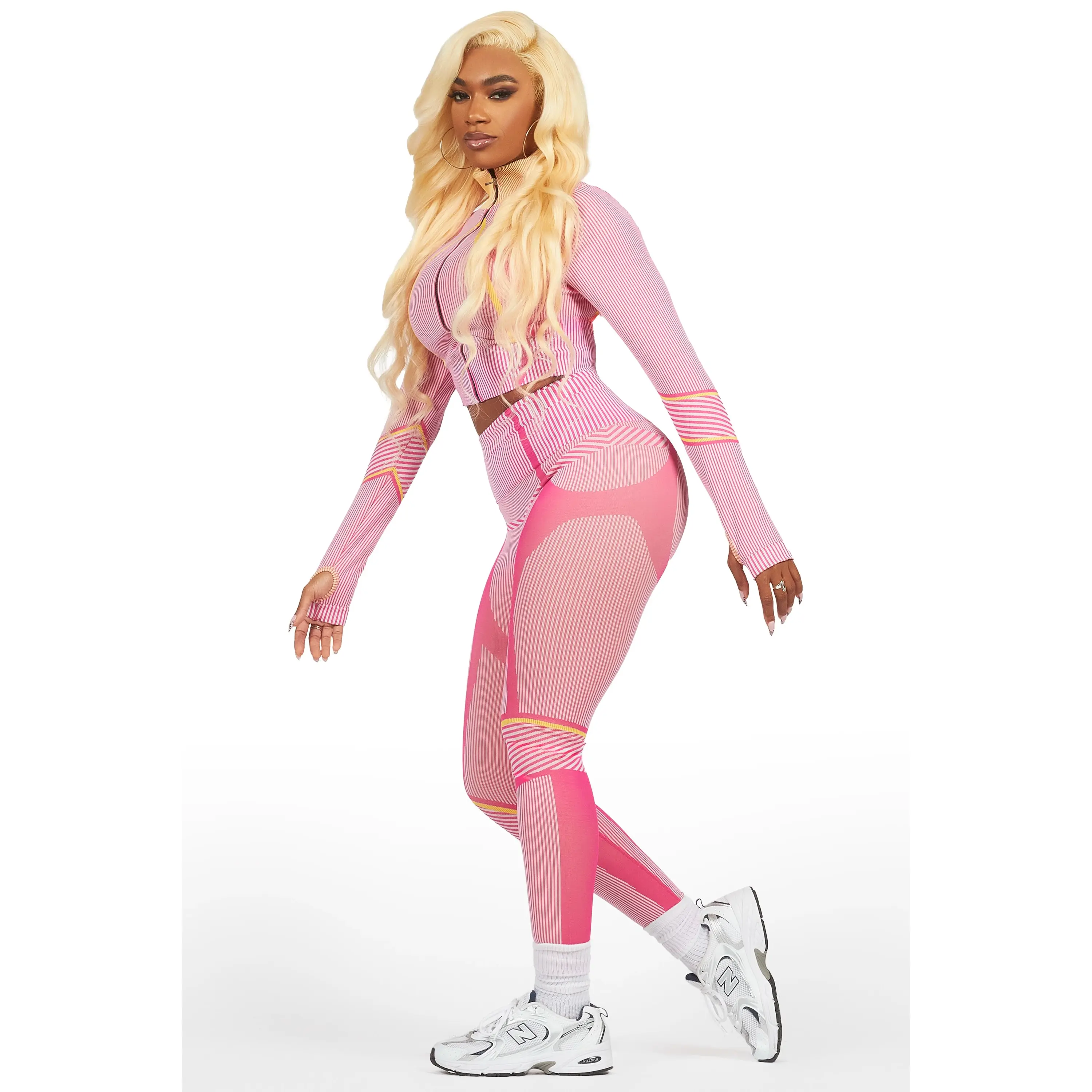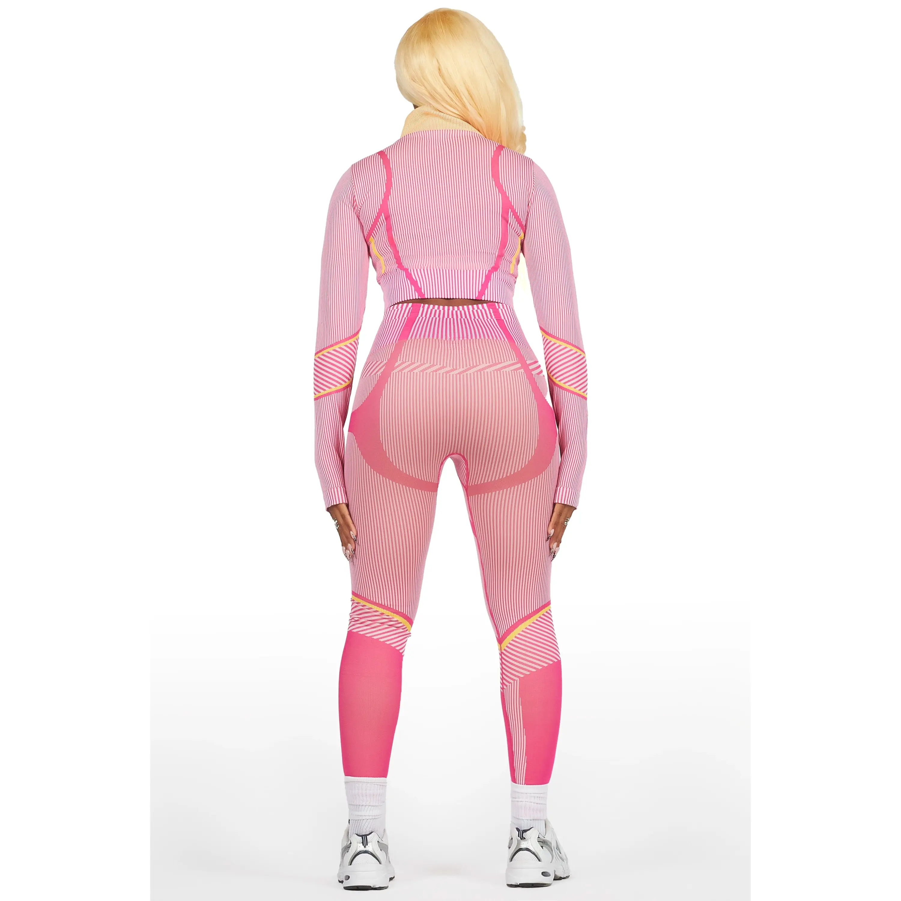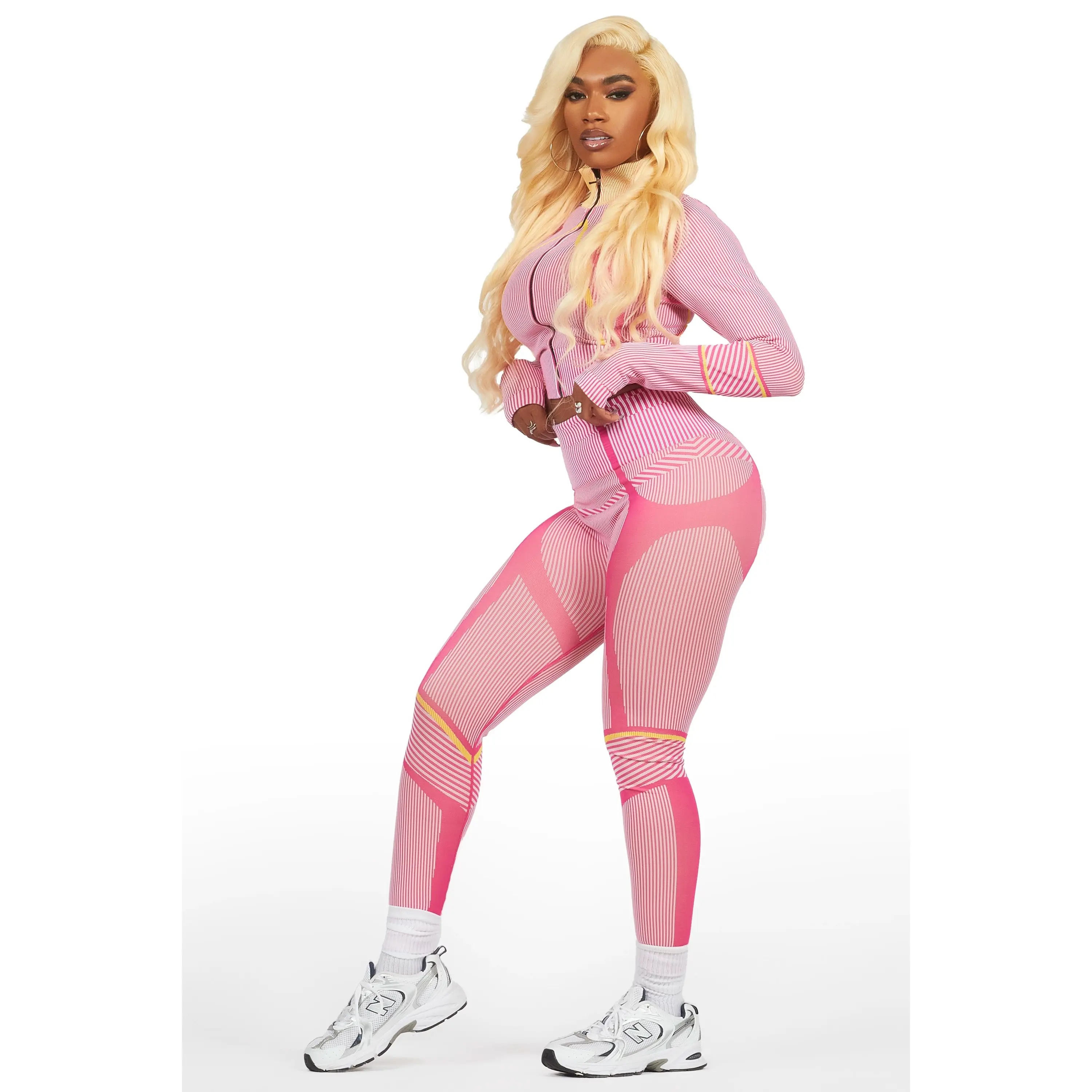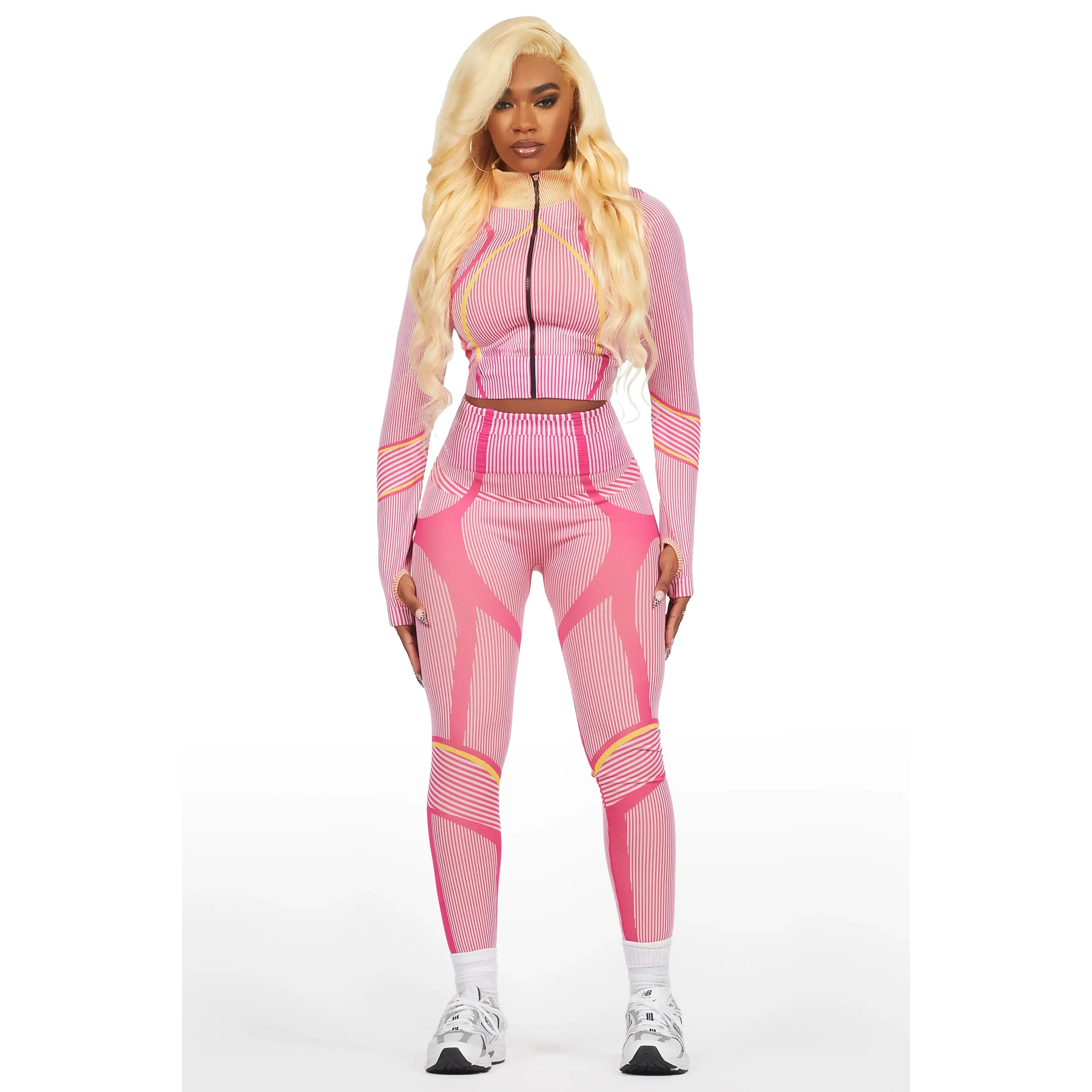 A two-piece booty-shaping activewear set for women in fuchsia. Designed with breathable stretch fabric and sweat wicking technology for the perfect everyday set.