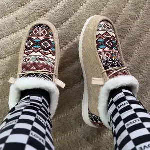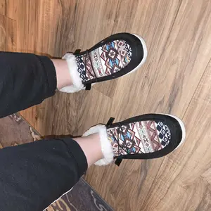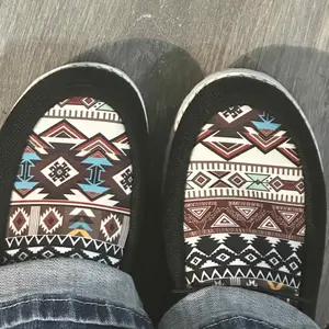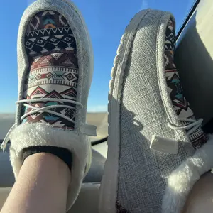 The style of hey dude but not quite, the size was correct but a bit tight from first time wear, also will make your feet a bit moist as you wear without socks. Love the colors of the tribal pattern.