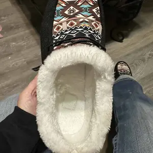 Love how the inside is fuzzy just like the top of the shoes fits amazingly its like wearing a Tena shoe but more comfortable