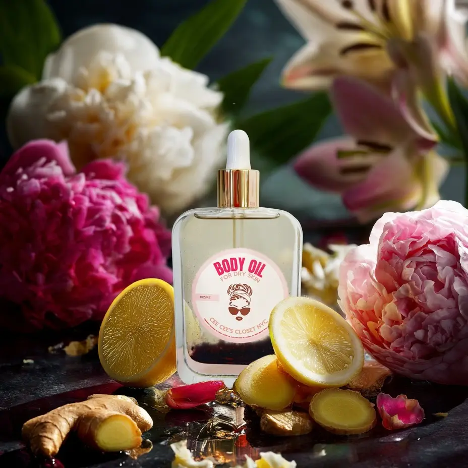 Awaken your senses with Desire, a luxurious scented dry oil that leaves your skin feeling irresistibly soft, smooth, and deeply hydrated. This exquisite blend of nourishing sunflower, sweet almond, moringa, and grapeseed oils absorbs quickly, while its intricate fragrance unfolds like a captivating embrace.