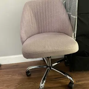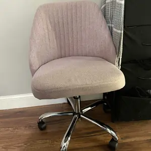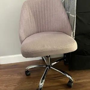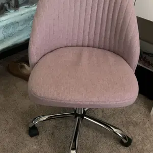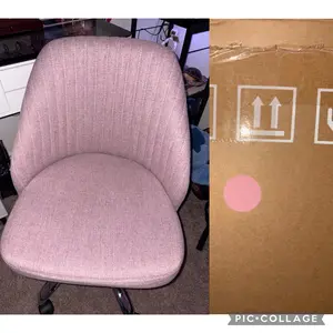 The chair is pretty, very easy to put together just disappointed in the color. The box and description said “pink” but in person it looks more purple/pink. Kind of hard to see with a picture.