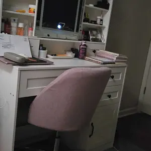 cute chair and easy assemble. it’s adjustable height and can hold my bfs weight (over 230 lbs).