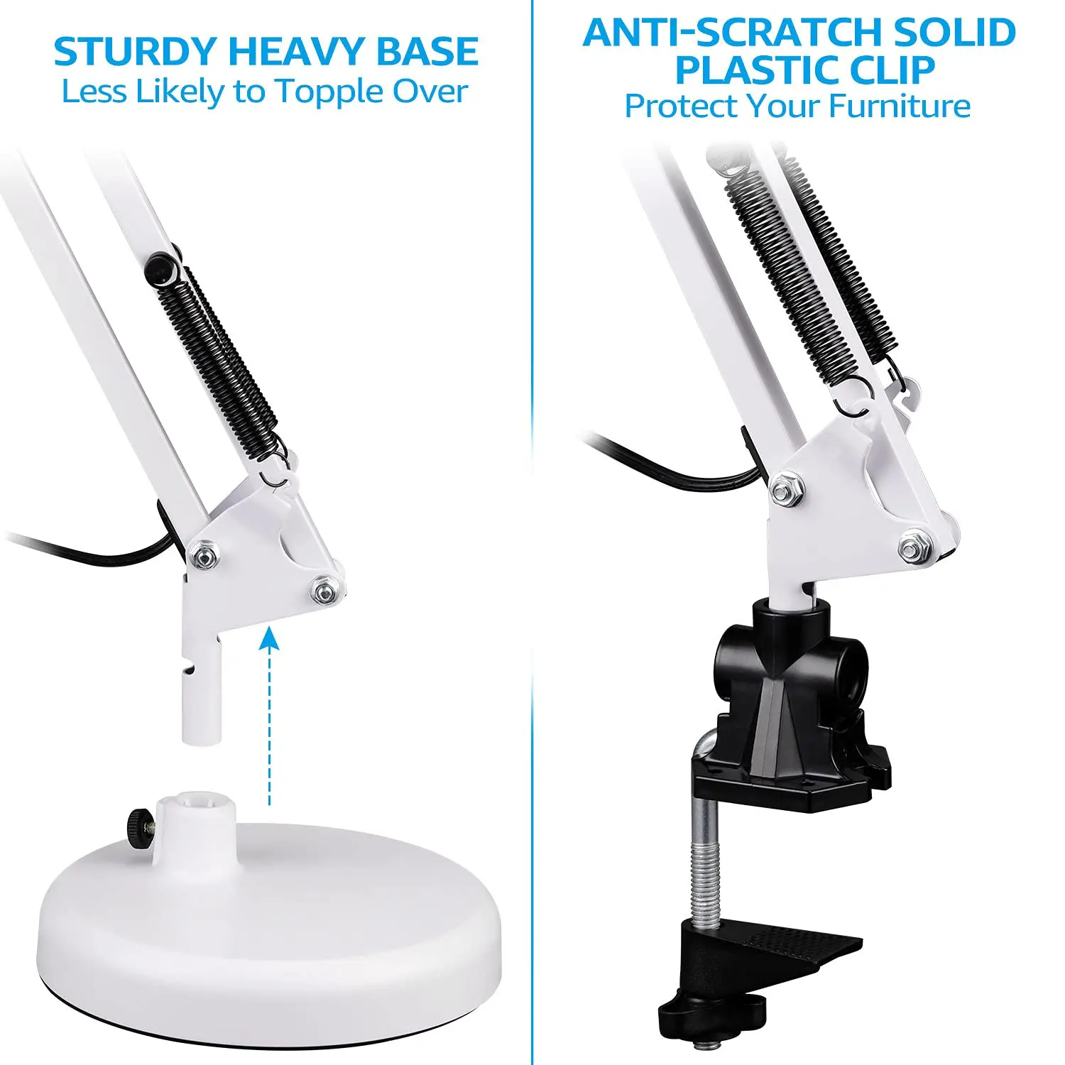 The TorchStar 2-in-1 Lamp can either stand on its own or be clamped onto any surface, vertical or horizontal. It offers flexibility with an adjustable spring-balanced arm and rotatable base and shade.