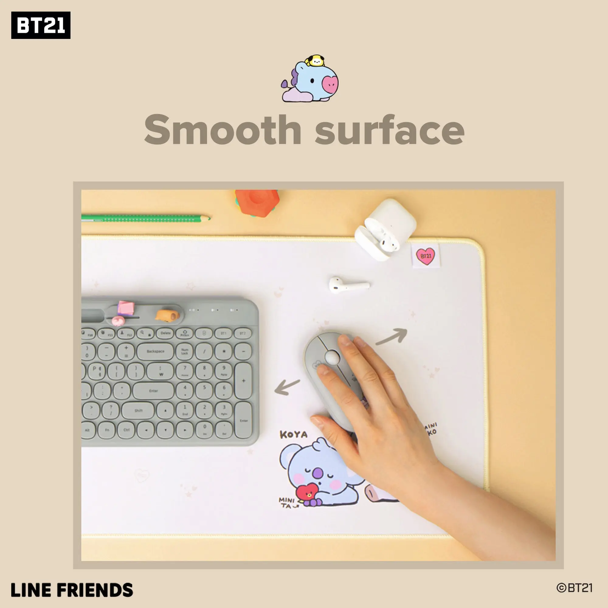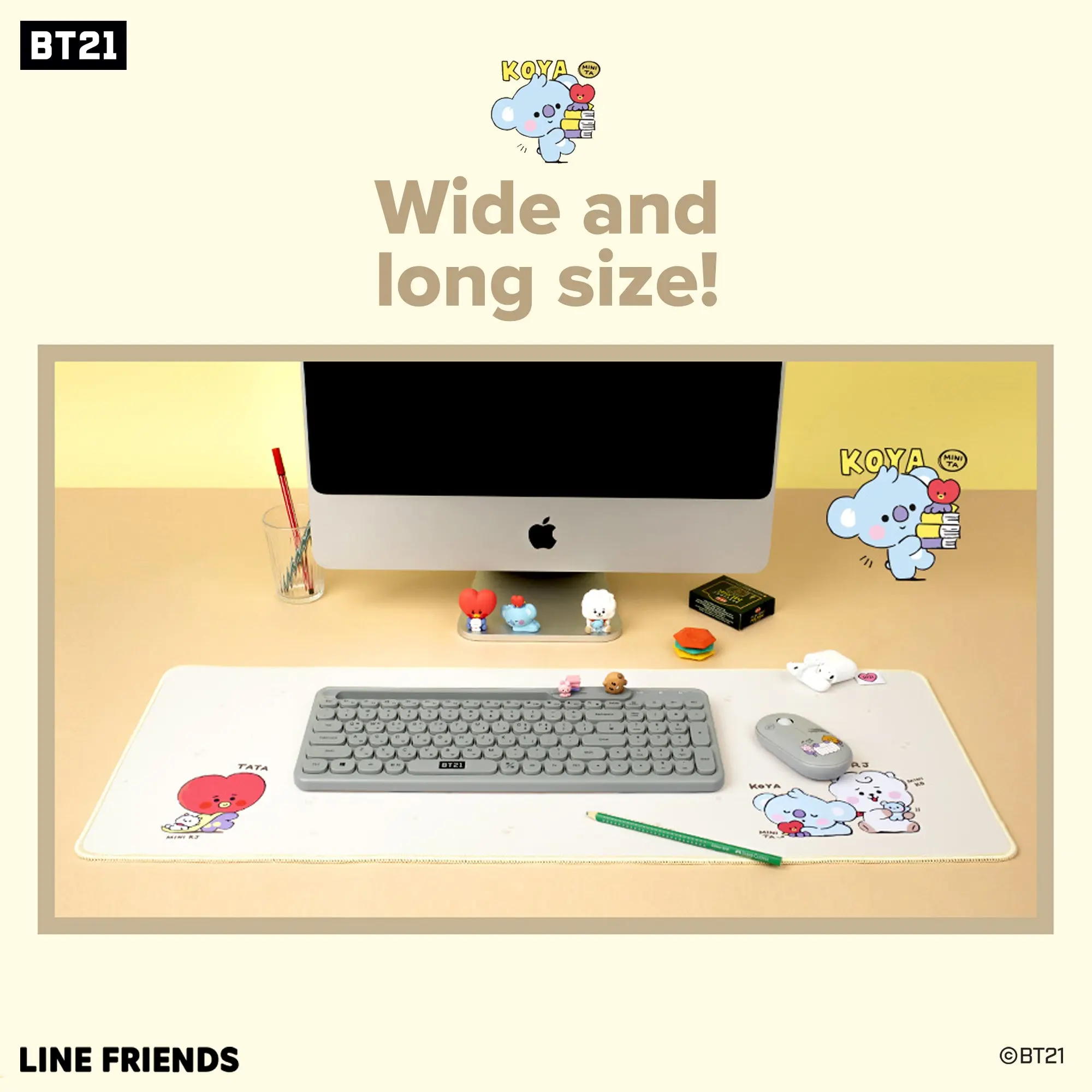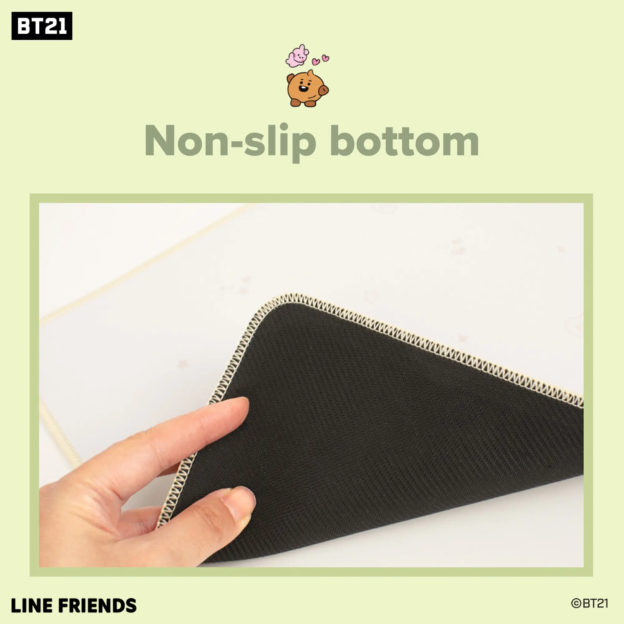 ·OFFICIAL LICENSED BT21: Authentic BT21 Desk Mat. deal for keyboard and mouse users, our pad allows you to customize your desk with adorable BT21 characters. Craft a unique workspace and let the BT21 MY LITTLE BUDDY bring joy and stress relief throughout your day.
