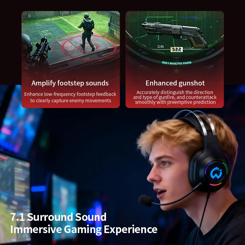 Stereo gaming headphones for PS4, PC, Xbox One, PS5 game console, PC and laptop, headphones with microphone, LED lights, 7.1 surround stereo, wired headphones, RGB lighting, USB-A, high-resolution studio monitoring/mixing/DJ stereo headphones