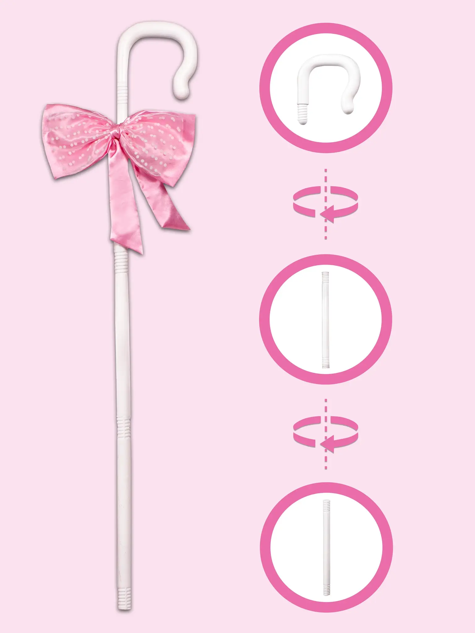 Complete your DIY Little Bo Peep costume with the Detachable Shepherd’s Hook by Leg Avenue. Designed with a charming curved staff and finished with a playful pink bow, this lightweight accessory breaks down into separate pieces for easy assembly, transport, and storage. Whether you're headed to a costume party or curating a Halloween look with fairytale flair, this is the perfect finishing touch.