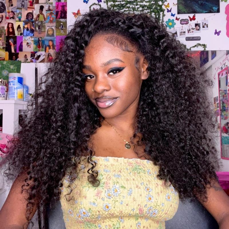 I love this kinky curly half wig💕😘. It's perfect for summer because I can put it on and take it off whenever I want. It's very🥰 natural and the curls are soft and bouncy. It's very voluminous and light. I really like that you can style it in multiple ways, like a bun or even a chignon.
