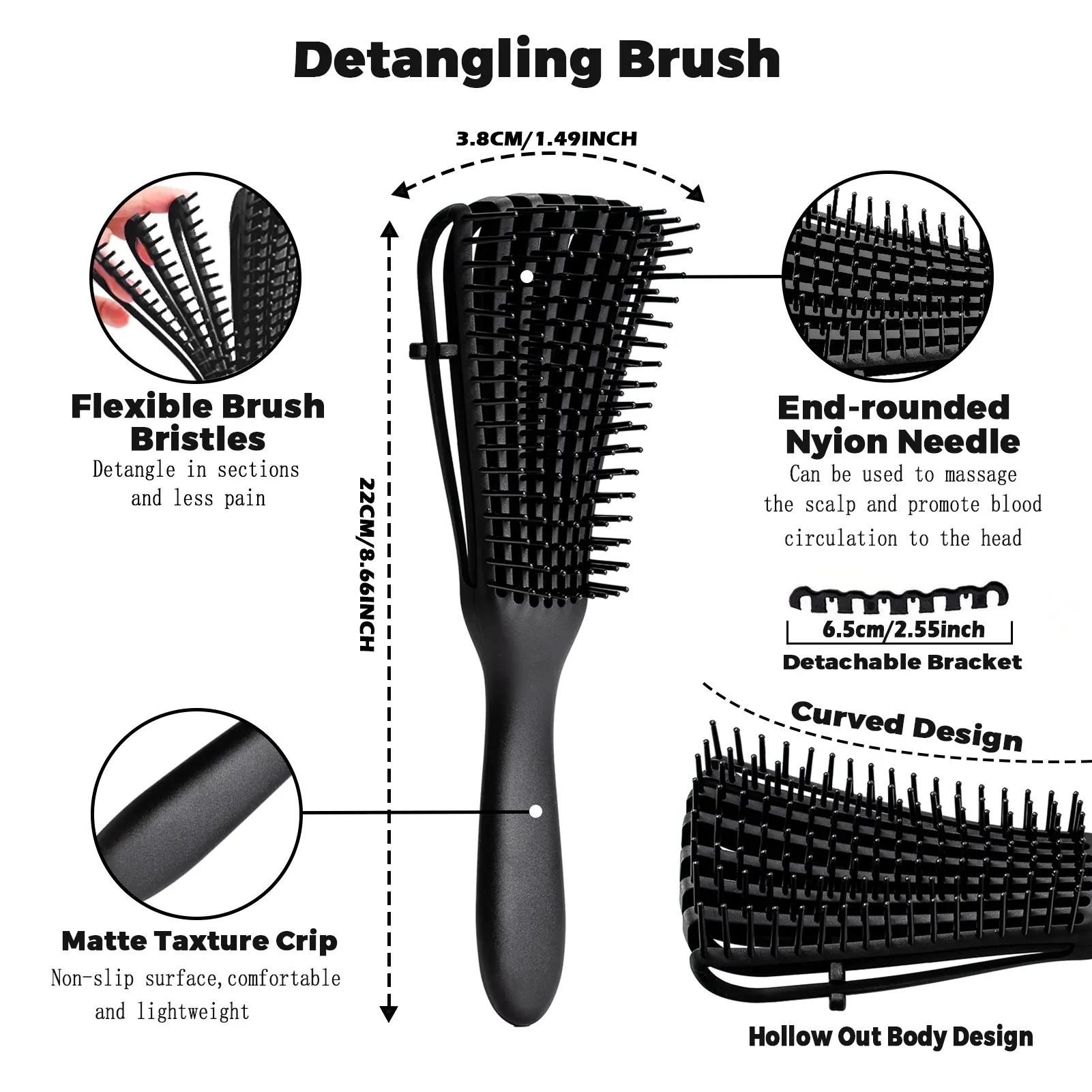 ·Ideal for Black Natural Hair: This detangling brush is specifically designed for black natural hair, curly hair, and Afro 3/4abc texture. It ensures a smoother detangling experience.