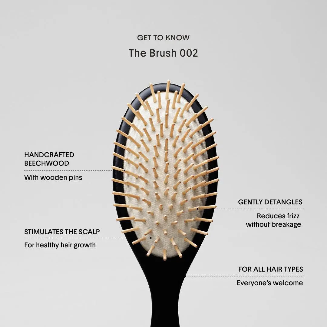 Designed for all hair types and universal use, the Brush No. 002 is handmade in Italy from natural beechwood for a beautifully sturdy tool that provides the utmost care for your hair for the long term. #cleanhaircare #luxuryhaircare #takeyourtime #crownaffair