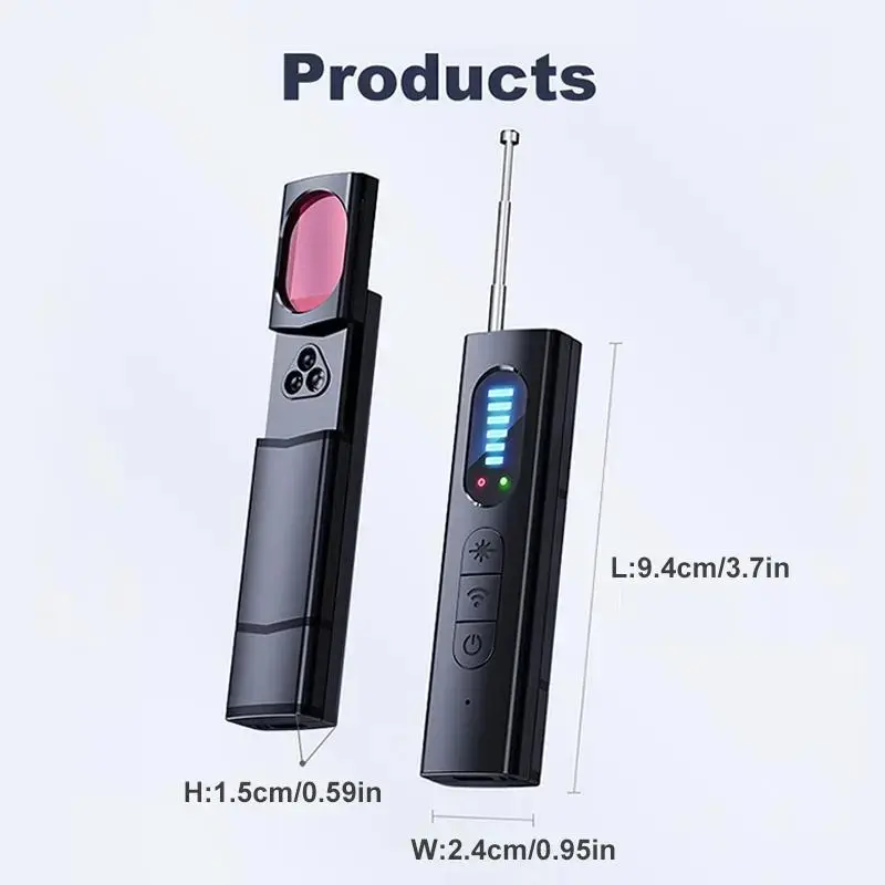 Discover the ultimate security solution with our Spy Camera Detector! This versatile device is perfect for cars, GPS trackers, and more. It offers 6 levels of sensitivity and 4 detection modes. Ideal for travel, it ensures safety in various settings like bathrooms, offices, hotels, and Airbnb properties. With 30 hours of working time, it's your reliable companion.