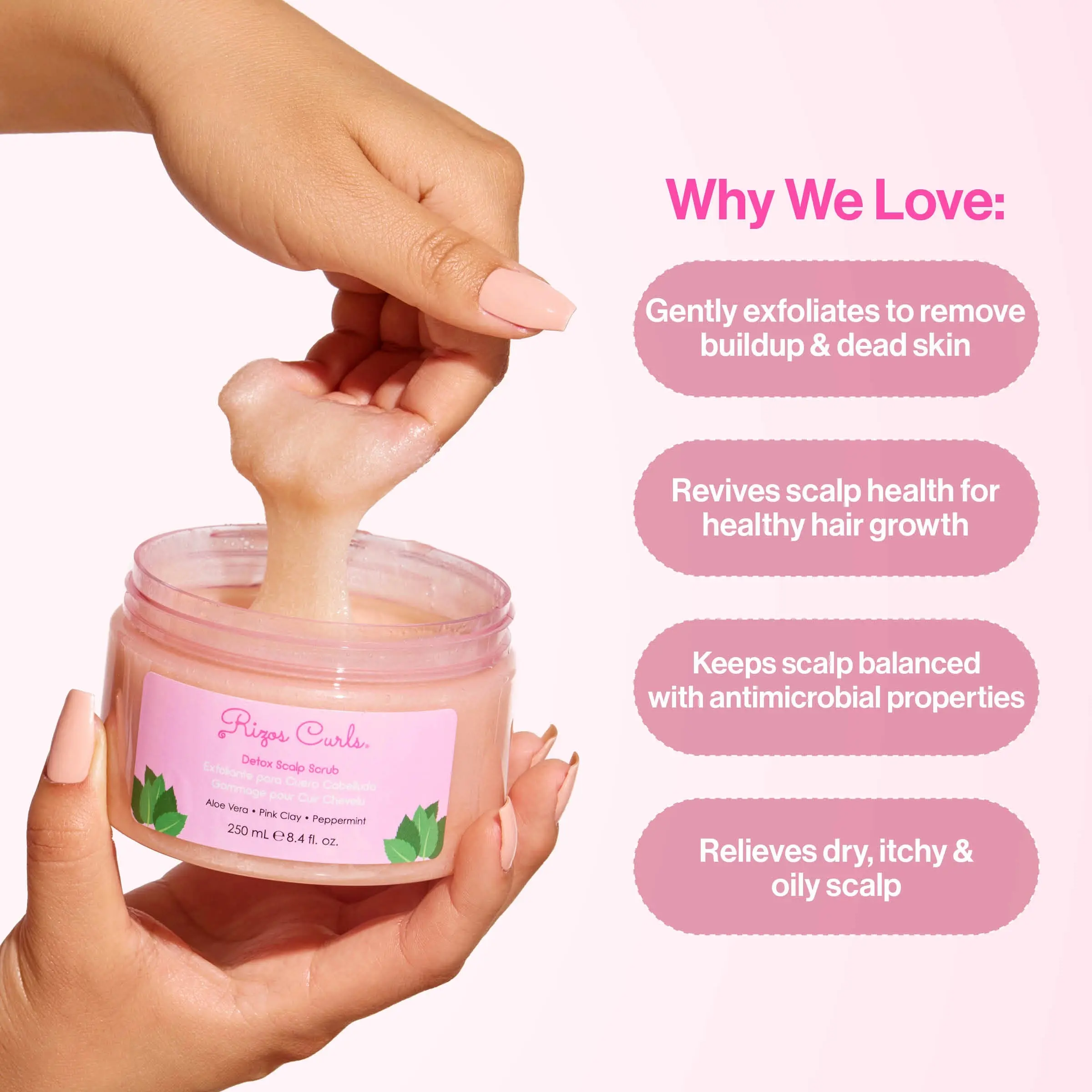 Our Detox Scalp Scrub gently exfoliates to remove buildup, dead skin, and excess oil from the scalp. It revives your scalp with natural ingredients like detoxifying Pink Clay, soothing Aloe Vera, and balancing Peppermint Oil. Perfect for all hair types, especially those with dry, itchy, and oily scalps.