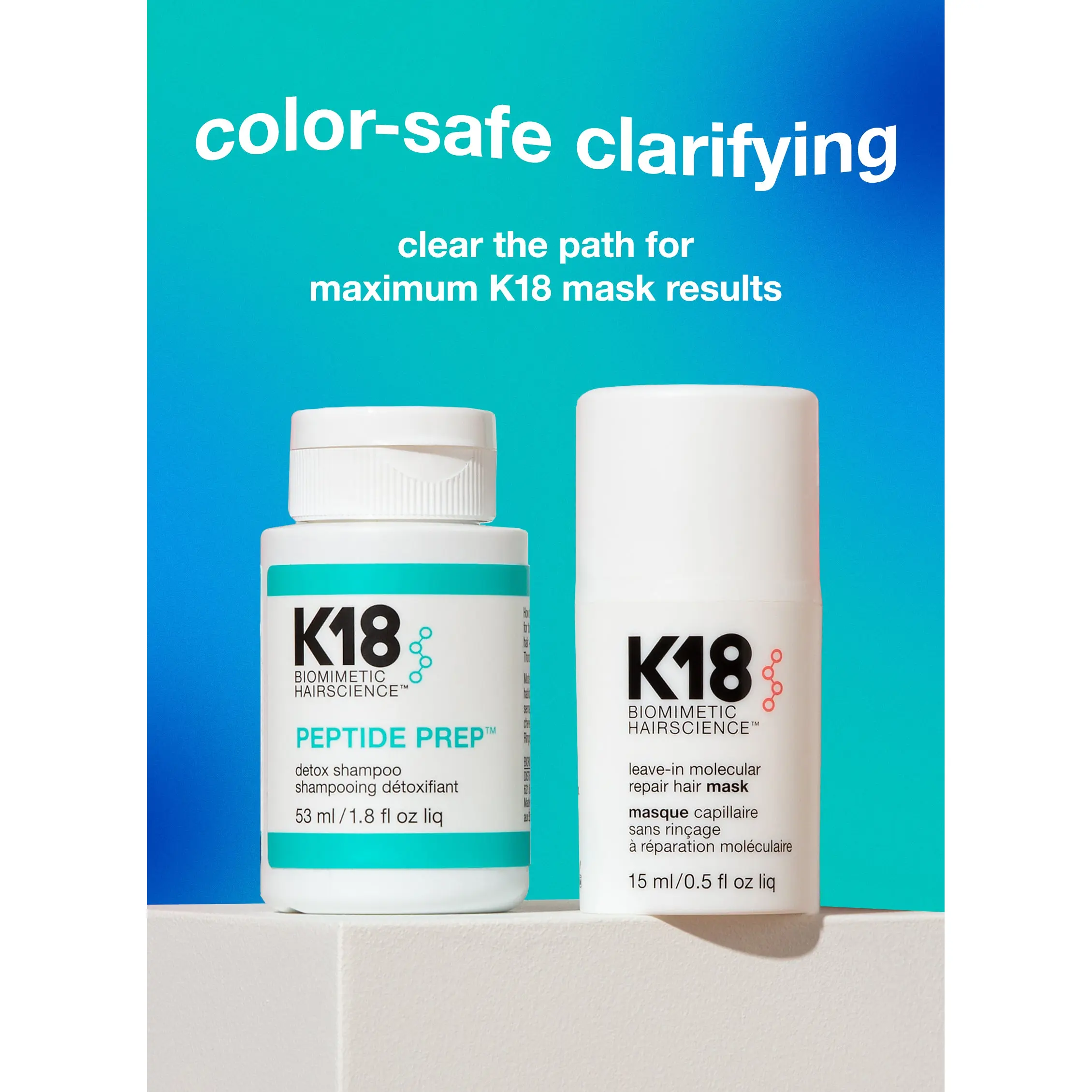 A color-safe, non-stripping clarifying shampoo with the K18PEPTIDE™ to gently but effectively remove 99% product buildup*, 95% sebum* + 76% copper* for detoxified, refreshed hair.