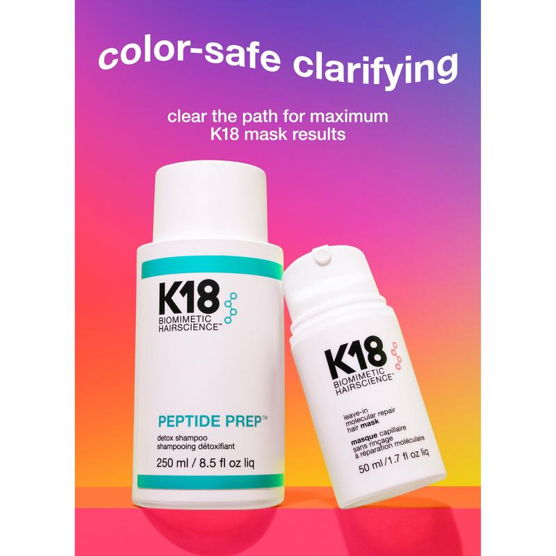A color-safe, non-stripping clarifying shampoo with the K18PEPTIDE™ to gently but effectively remove 99% product buildup*, 95% sebum* + 76% copper* for detoxified, refreshed hair.