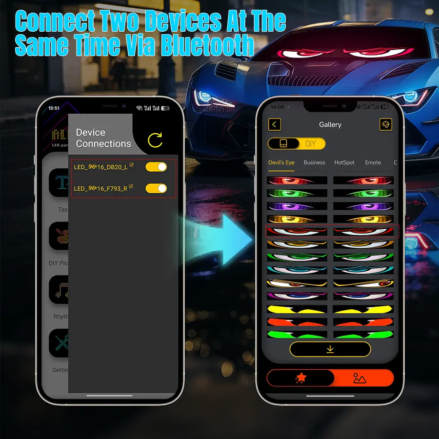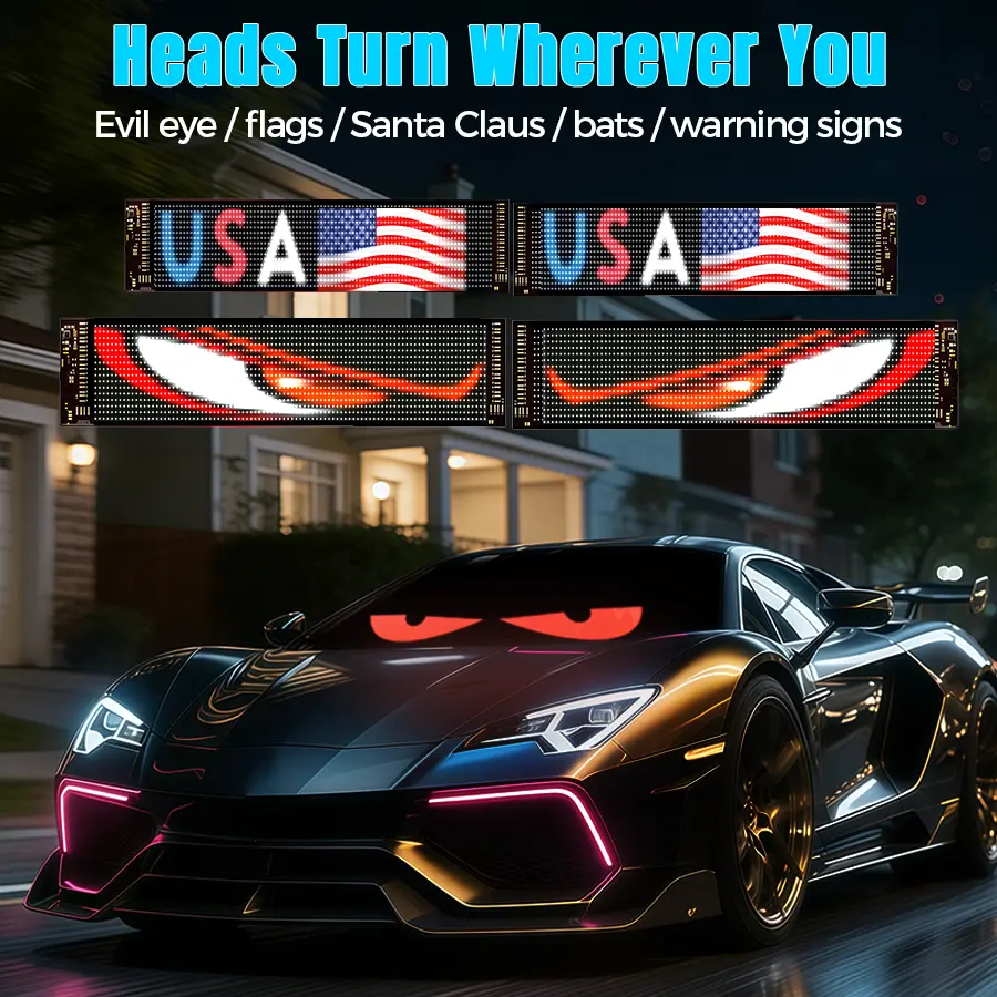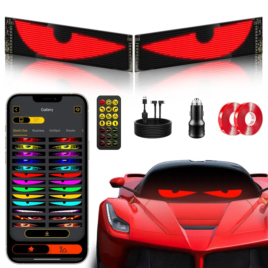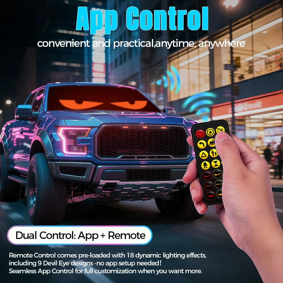 ·ăSmart APP ControlăOur LED eyes for truck windshield need download the iPixel Color app(no registration needed! ). LED matrix panel can be remotely connected to customize your LED car sign, LED eyes for car windshield, or windshield eyes animated LED. Control multiple car LED sign at once for a dazzling car window LED display or fun devil's eyes light for windshield effect!