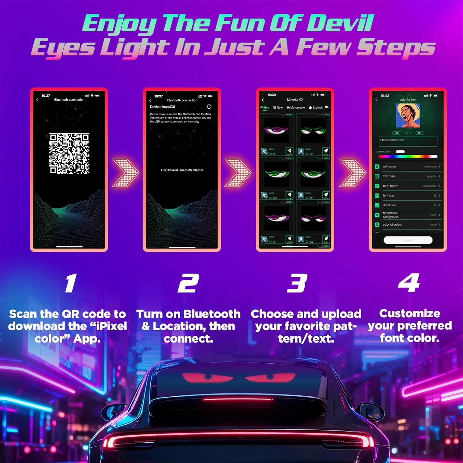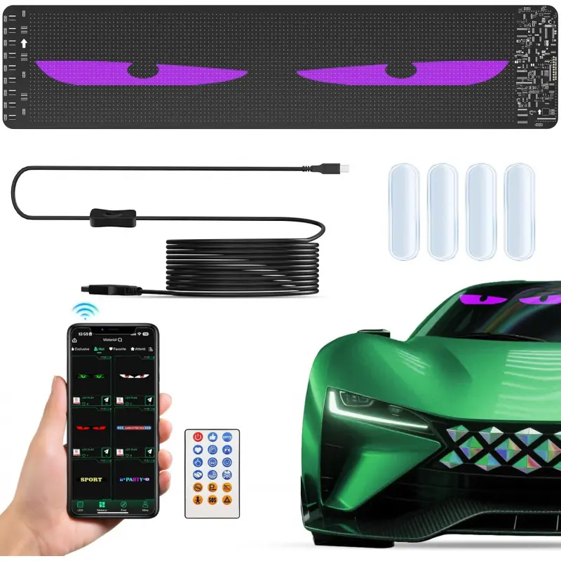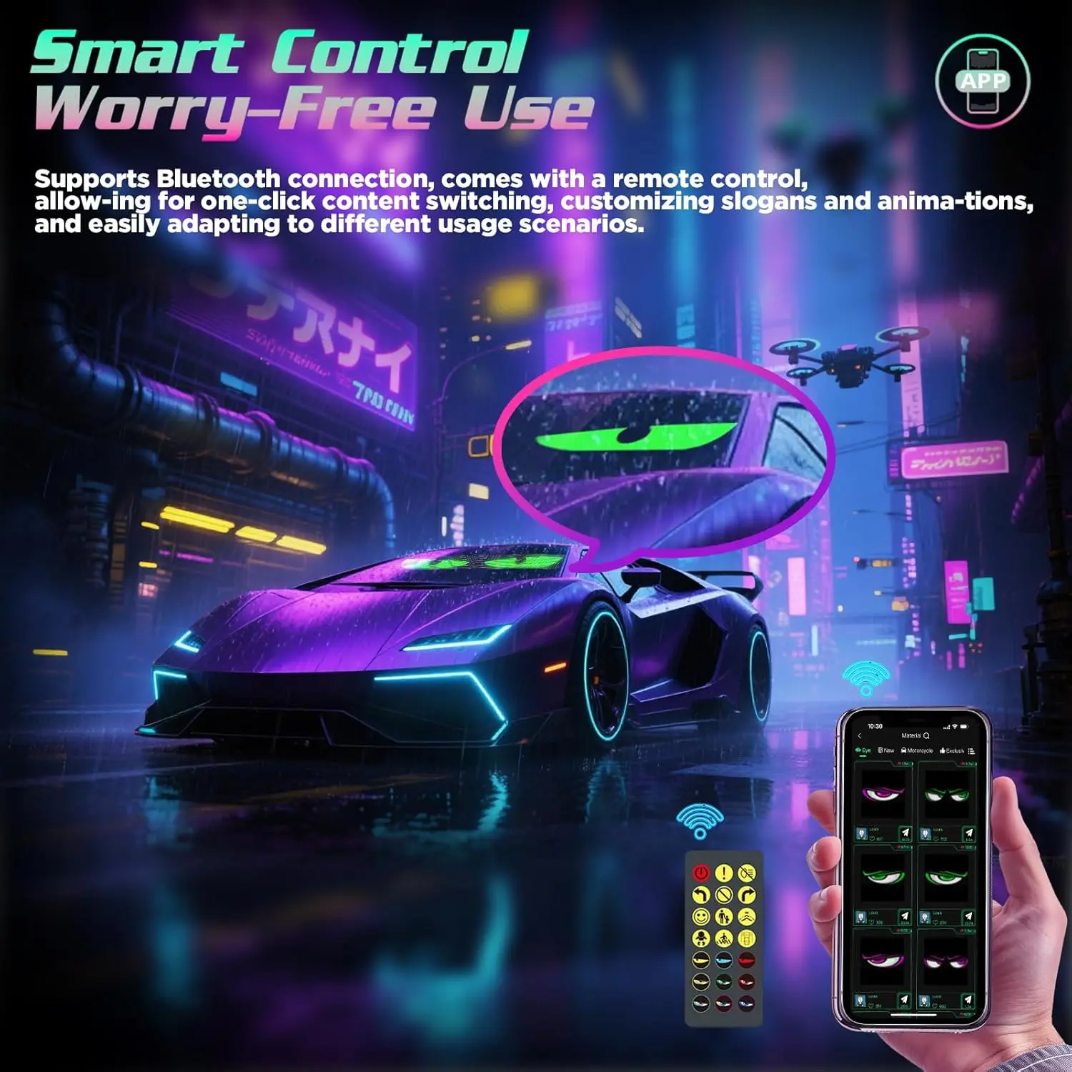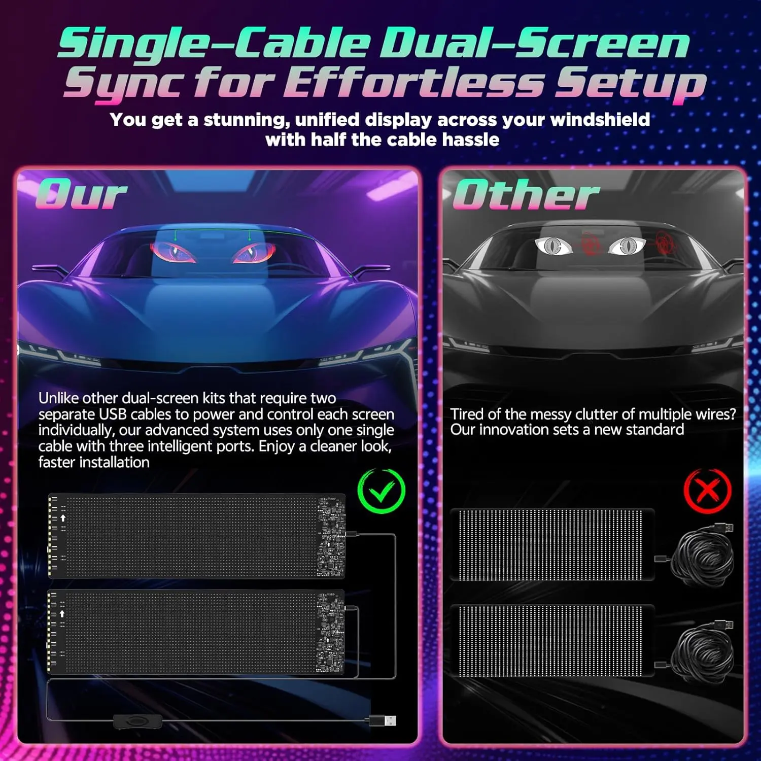 Devil Eyes 2PCS 19x4 Inch Flexible LED Windshield Screen, Programmable USB Matrix Panel with App and Remote Control, Custom Sign Display, IP65 Waterproof for Cars SUVs Trucks