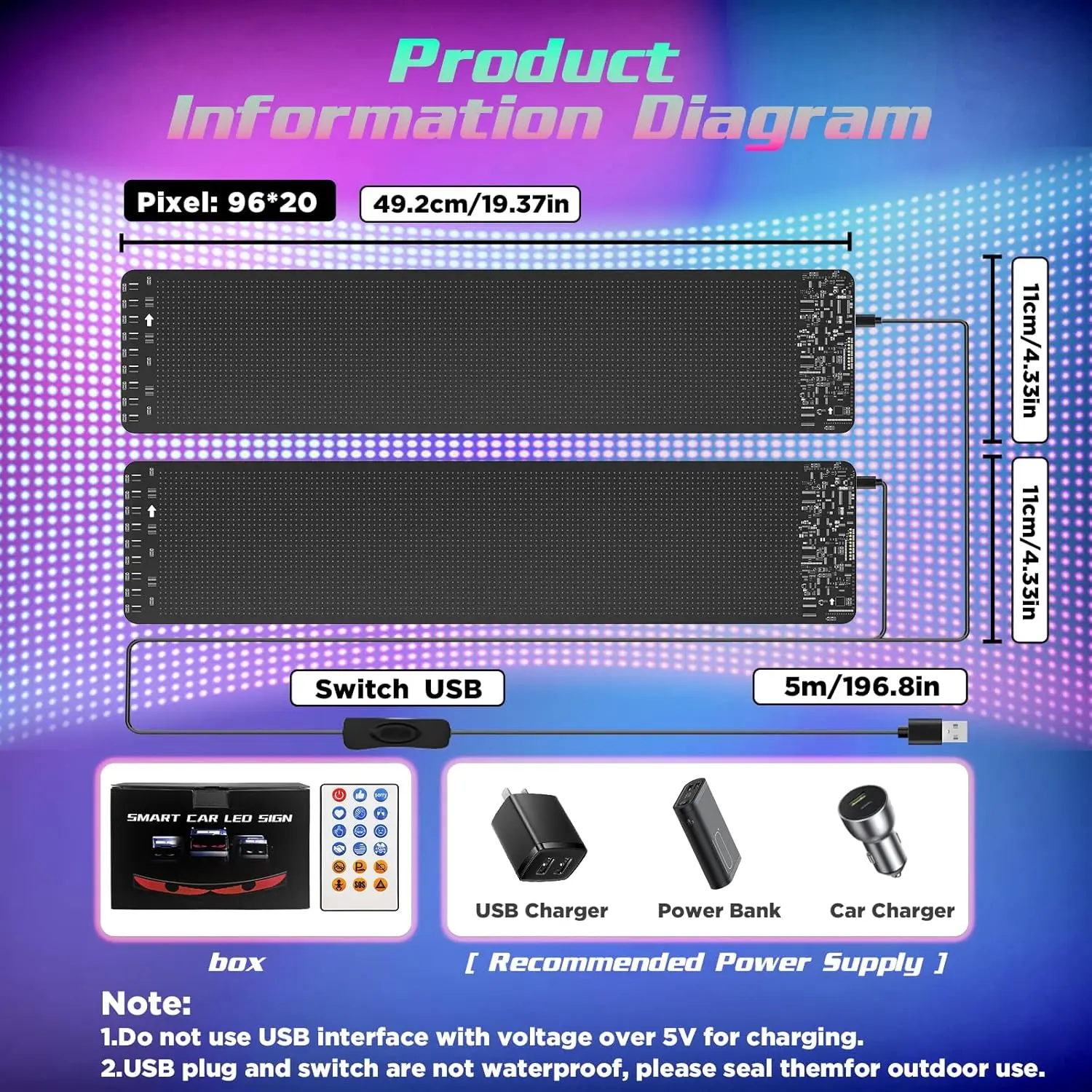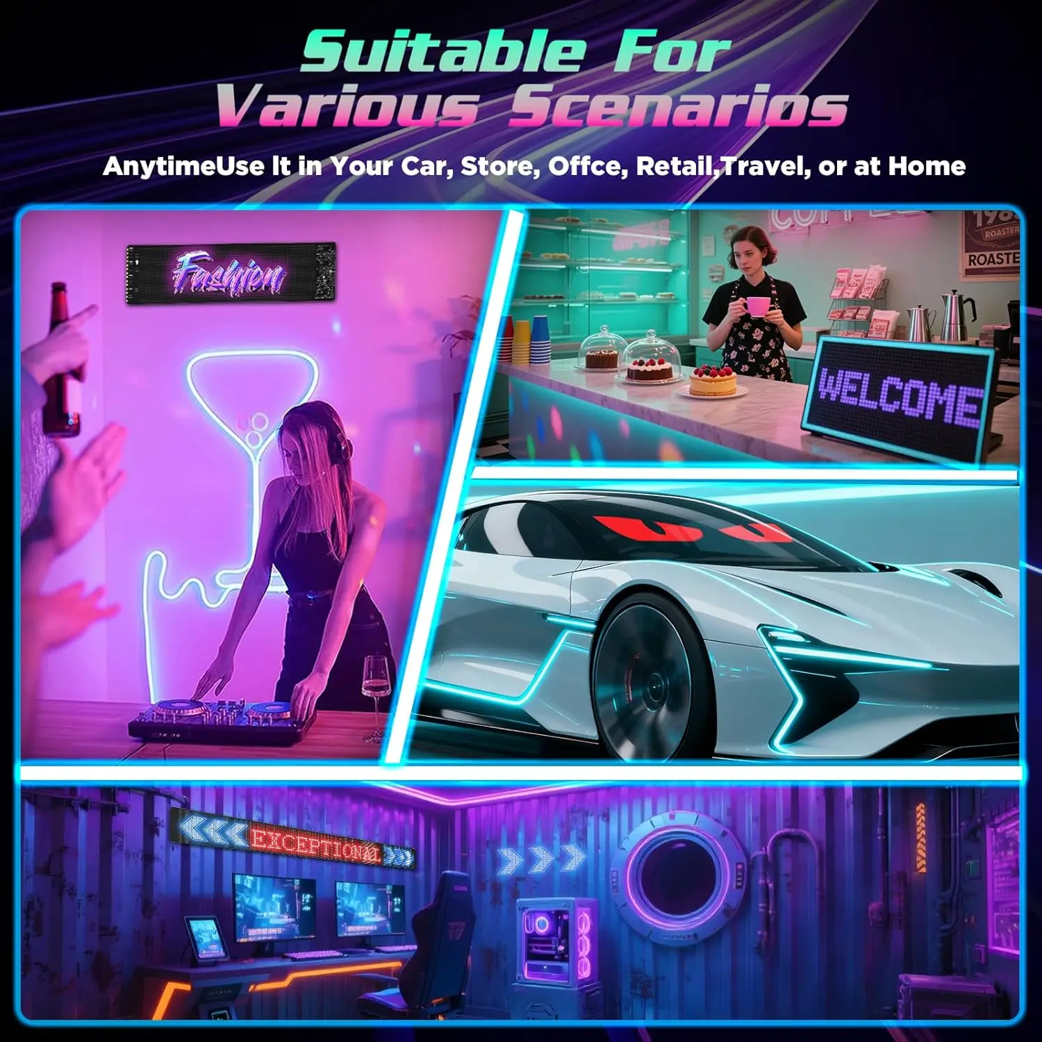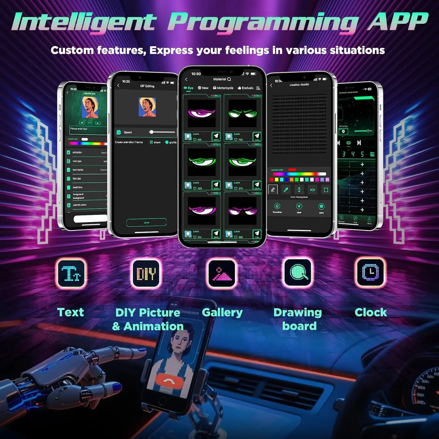 Devil Eyes 2PCS 19x4 Inch Flexible LED Windshield Screen, Programmable USB Matrix Panel with App and Remote Control, Custom Sign Display, IP65 Waterproof for Cars SUVs Trucks