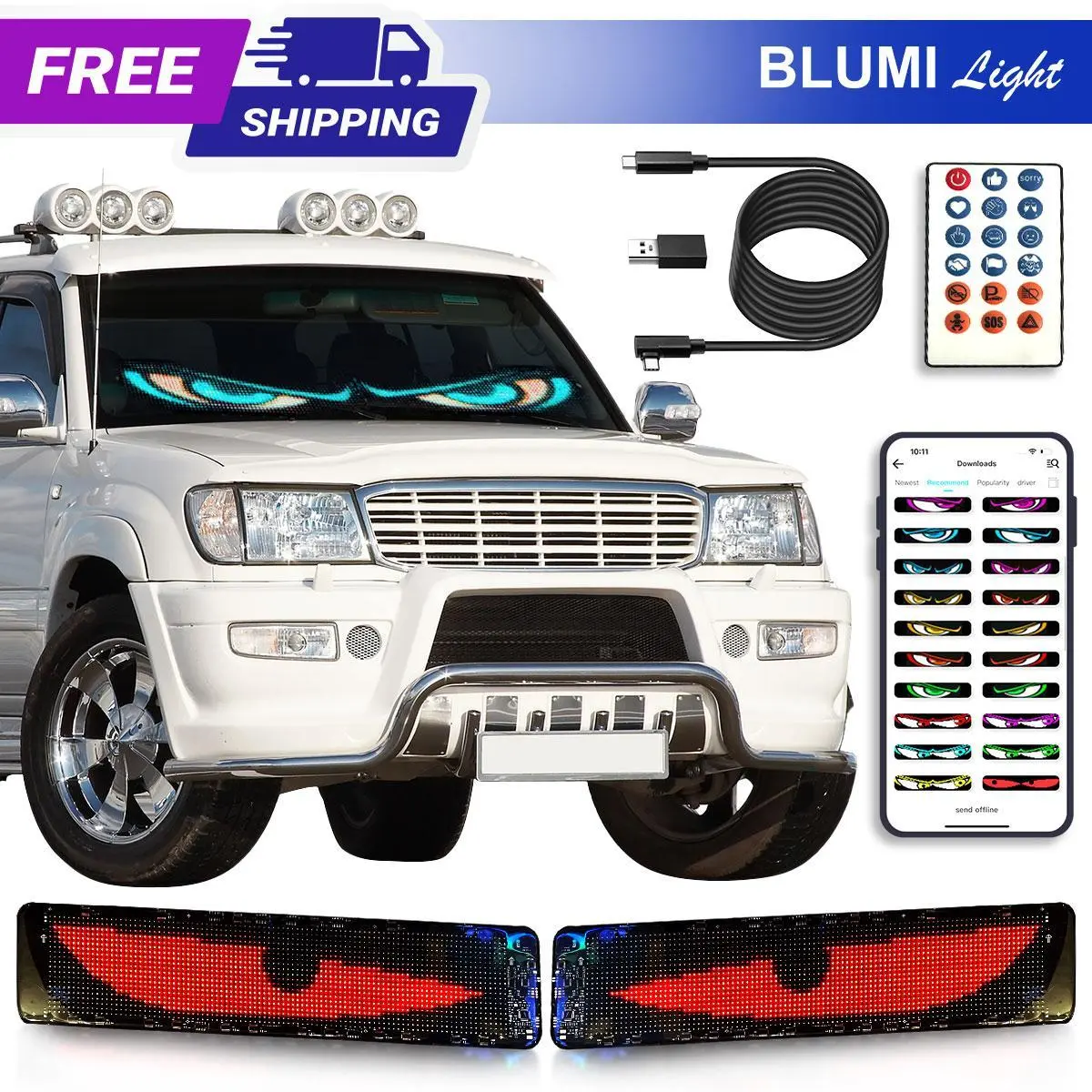Devil Eyes Light for Cars Dynamic Big LED Eyes 2PCS, Programmable Flexible Display with APP Control & Remote for Windshield 19.37 x 4.3 Inches Waterproof Customizable Animations
