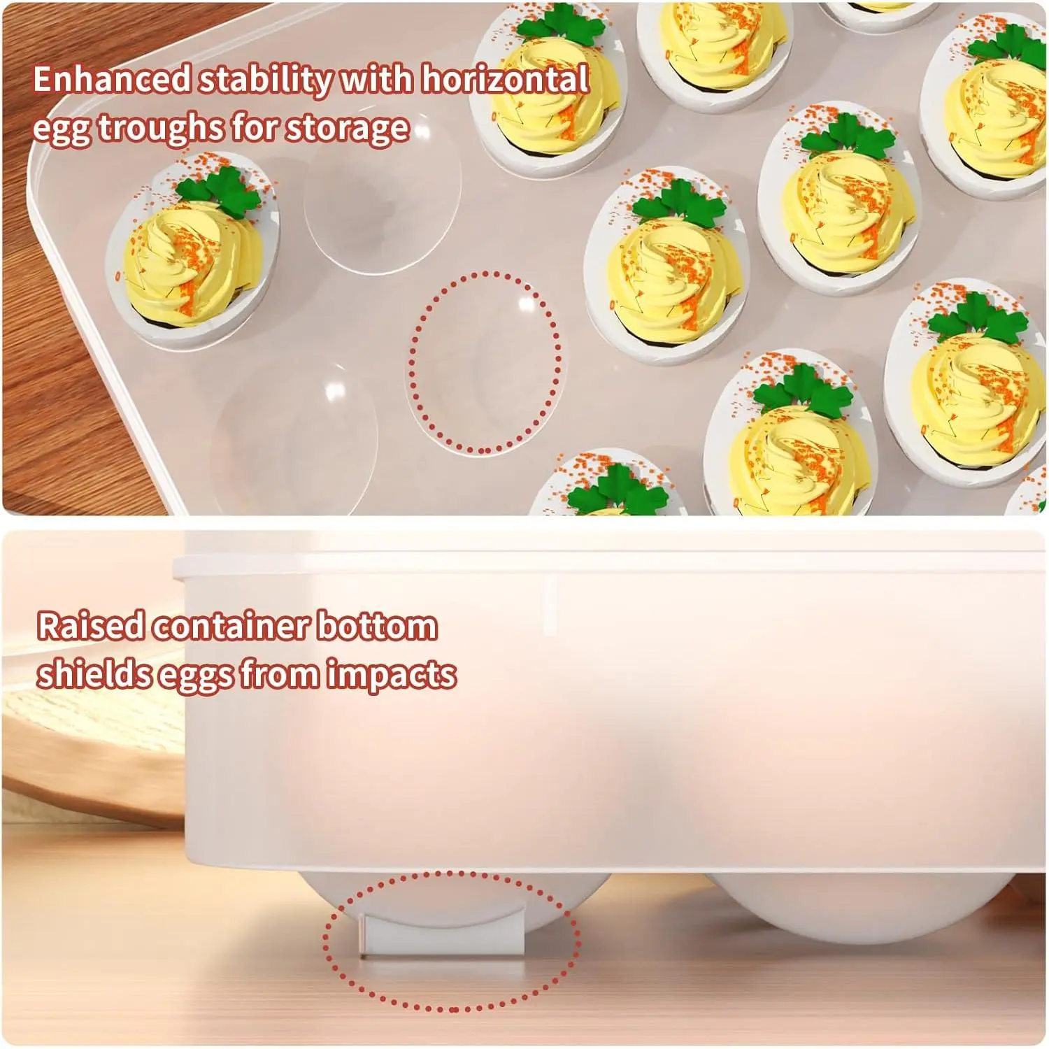 [Deviled Egg & Regular Egg Compatible] Uniquely designed troughs keep deviled eggs secure and mess-free, whether you're storing or transporting them. No sliding, no smudging.