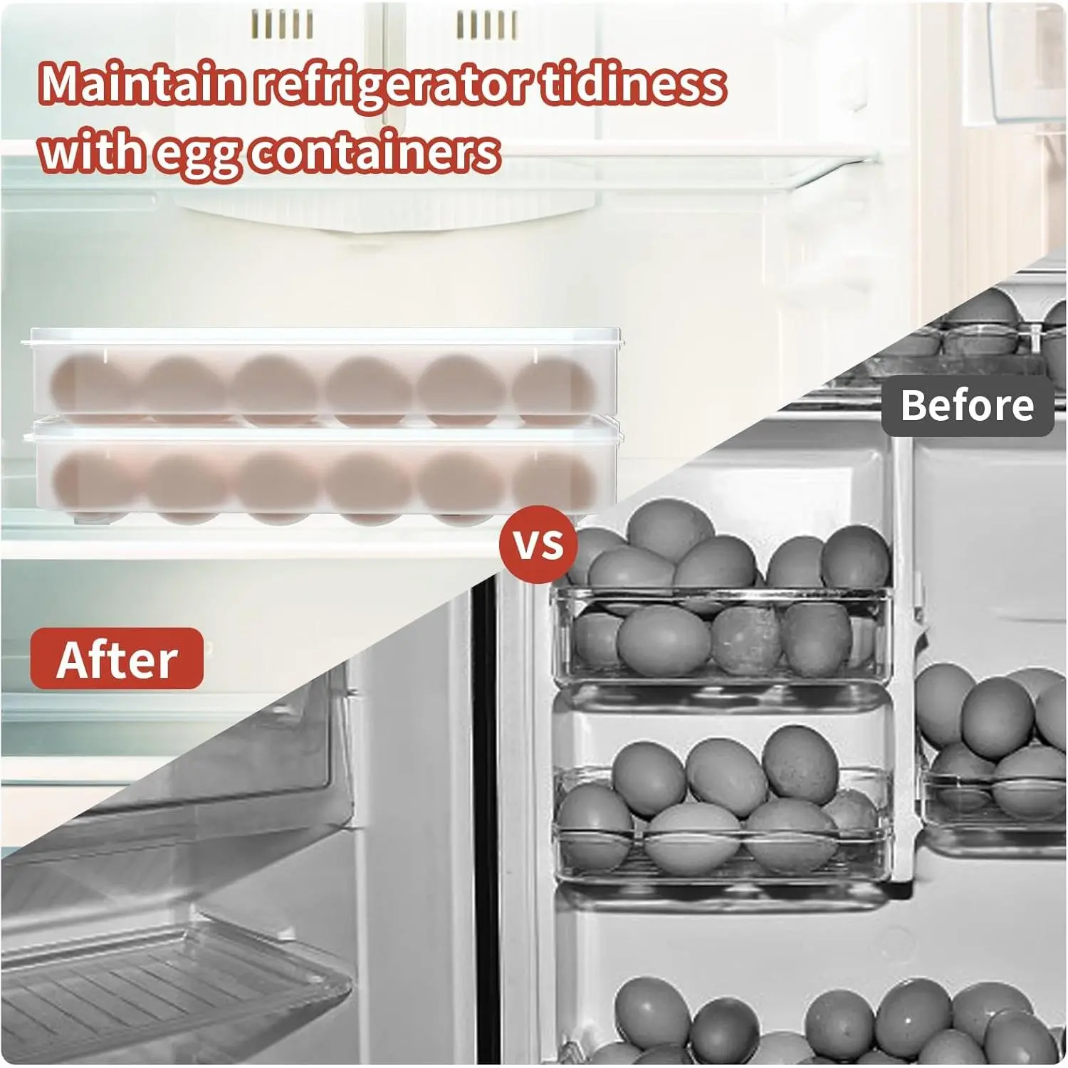 [Stackable & Space-Saving] Stackable egg holders help keep your fridge tidy and organized, preventing eggs from rolling around or getting crushed.