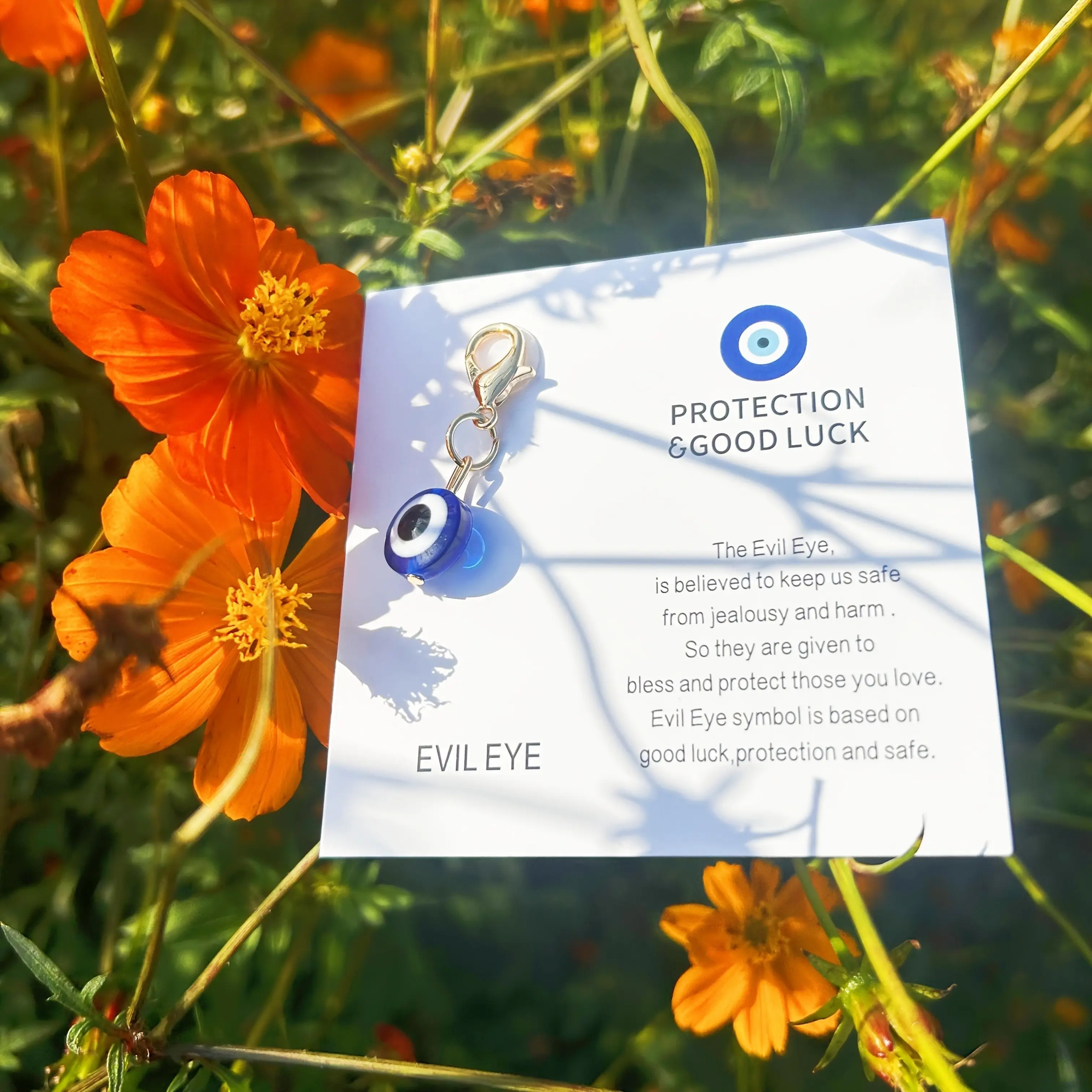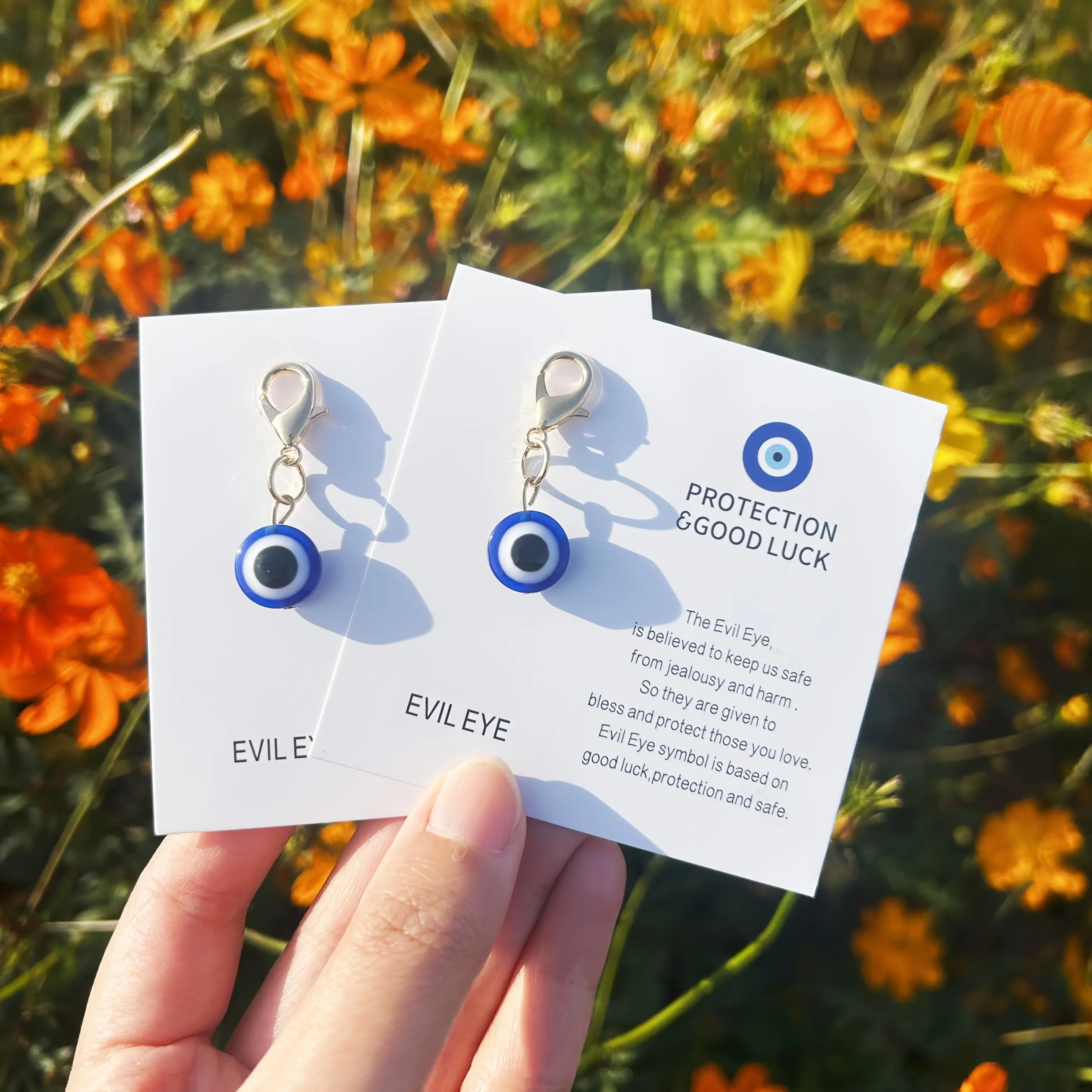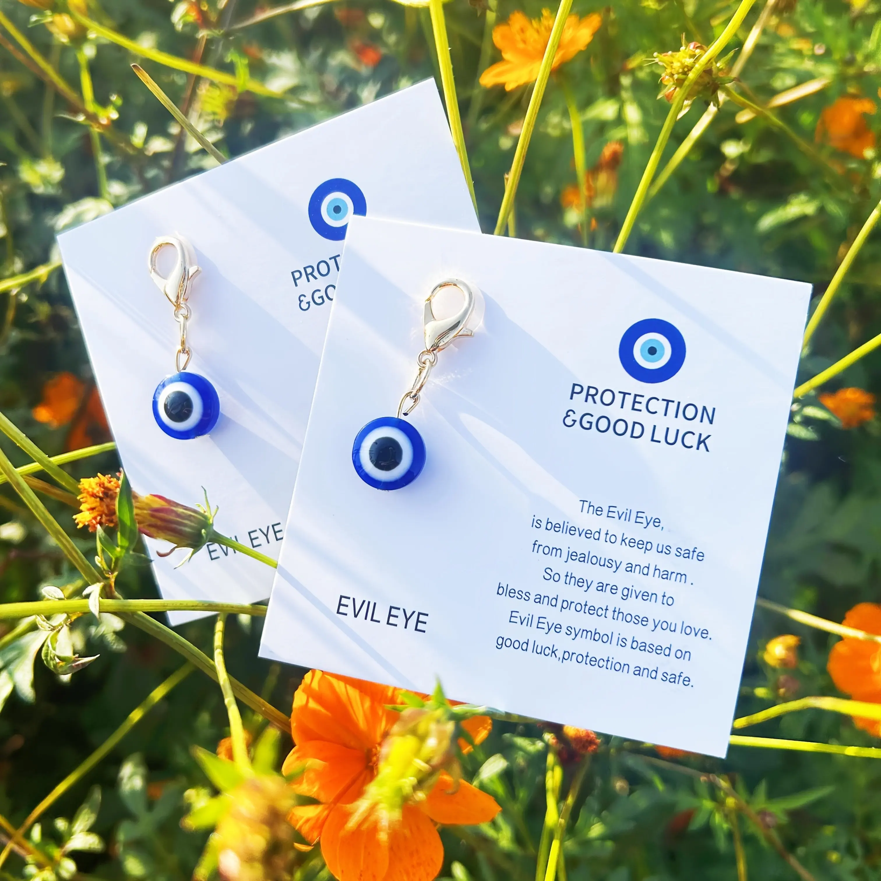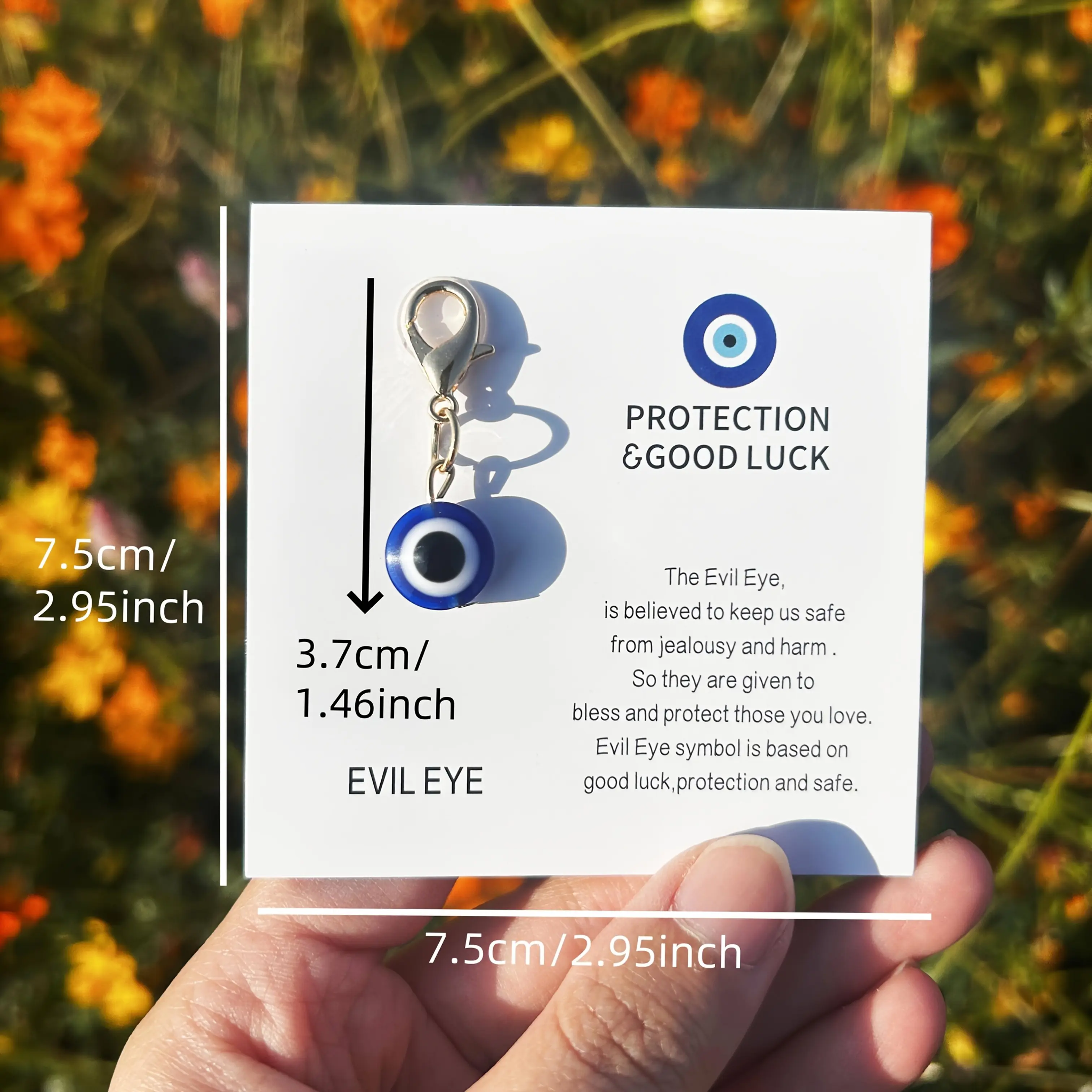 Each charm features a classic, vibrant blue evil eye resin bead, a centuries-old symbol believed to ward off the "evil eye"-negative energy, jealousy, and harm-while attracting good fortune and blessings.It’s attached to a sturdy, hypoallergenic gold-toned lobster clasp, making it easy to attach to keys, bags, pet collars, or zippers for on-the-go protection.