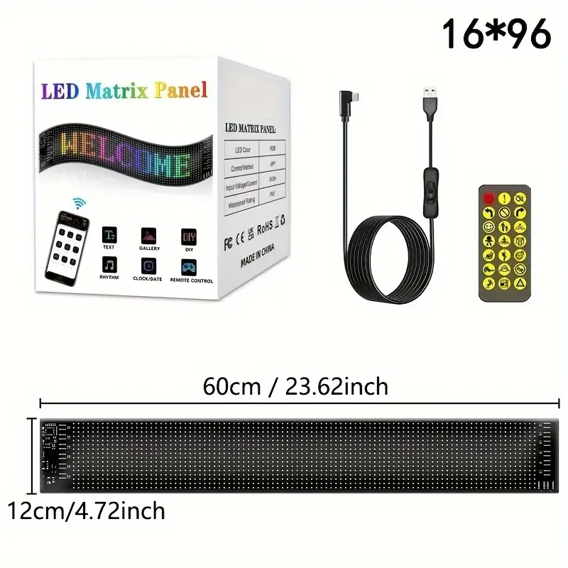 USB rechargeable LED accent light with remote, 110mAh lithium polymer battery, multi-color RGB lighting, 7 modes, ≤ 36V, with infrared control for motor vehicles