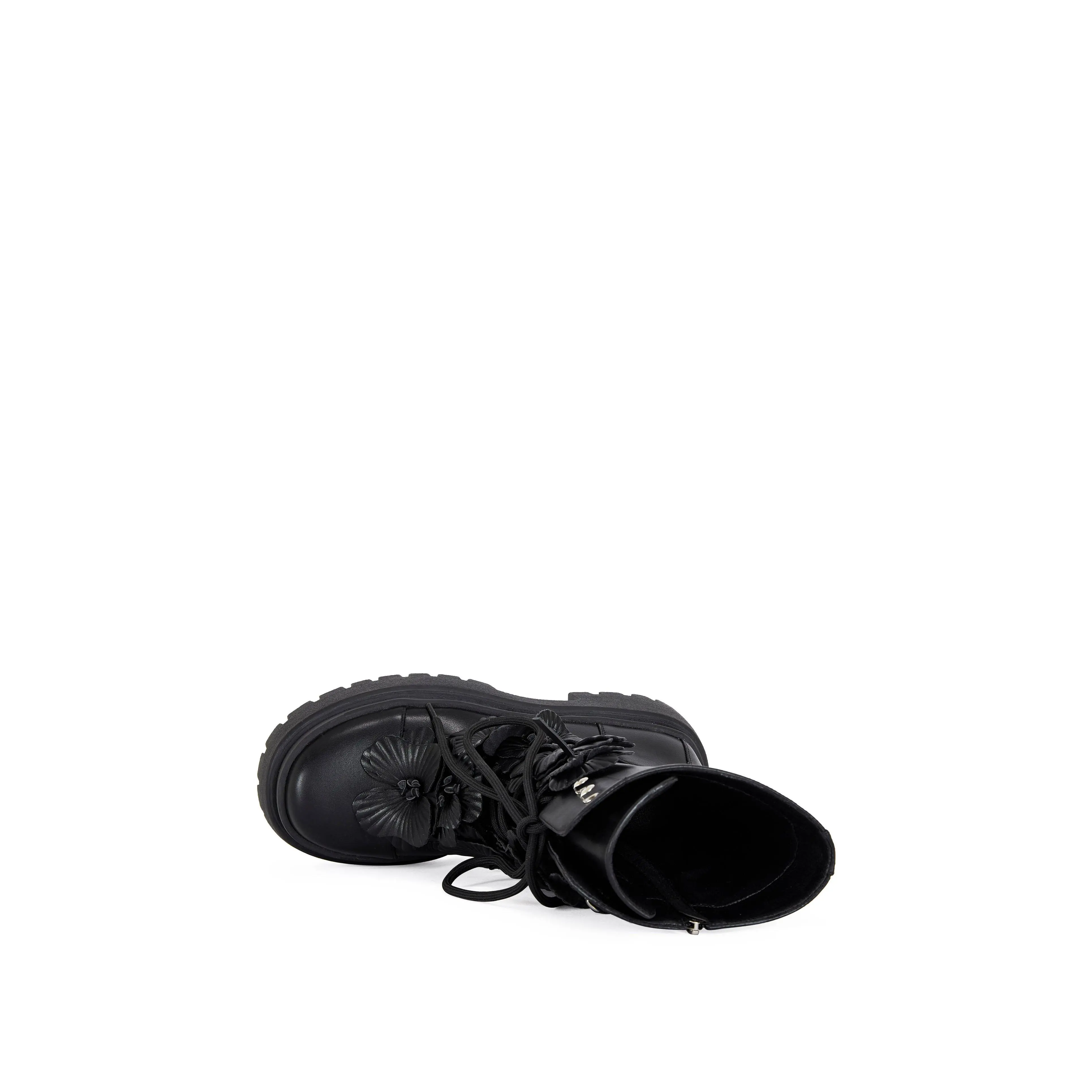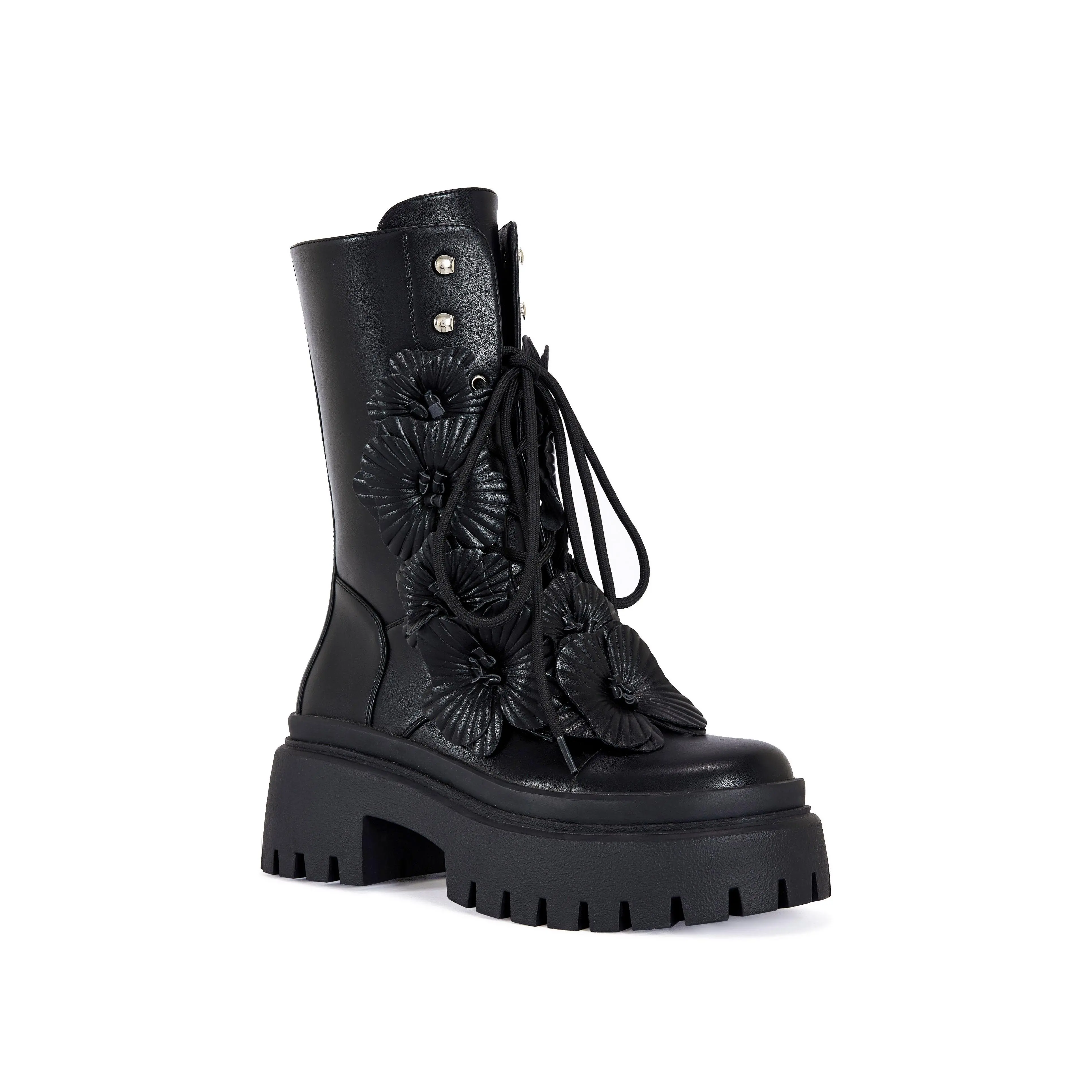 DEVOIR-BLACK 3D FLOWER COMBAT BOOTIE