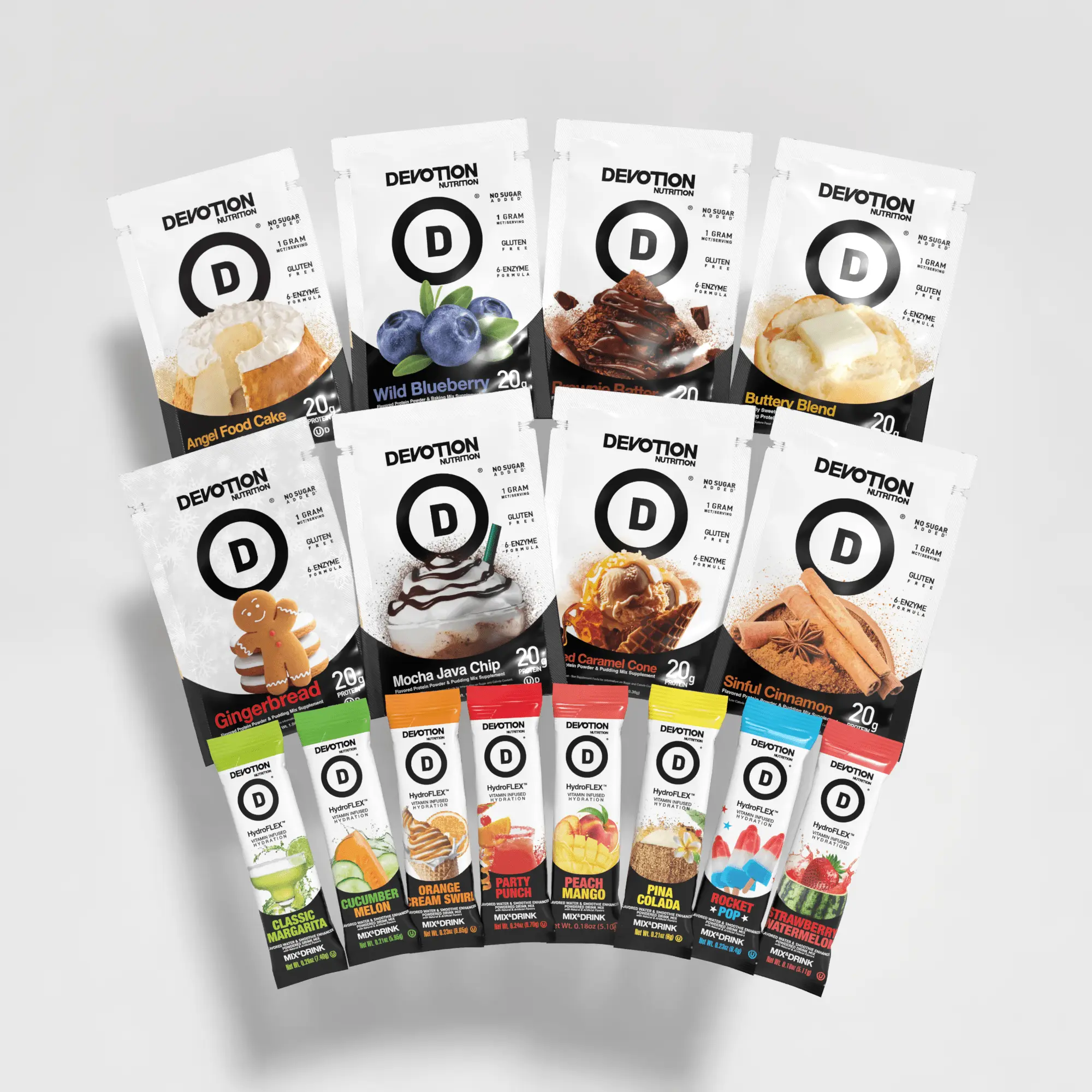 😋 8 Single-Serve Protein Powder Packets – Try our best-selling, versatile flavors that you can blend into shakes or a simple pudding, bake into delicious treats, or stir into your favorite recipes. You will receive one (1) single serving packet of each of the following flavors: Angel Food Cake, Brownie Batter, Salted Caramel Cone, Sinful Cinnamon, Buttery Blend, Mocha Java Chip, Wild Blueberry, and our seasonal Gingerbread! Want to get more delicious protein options? Visit our Devotion Protein Powder Collection to discover even more flavors to love!