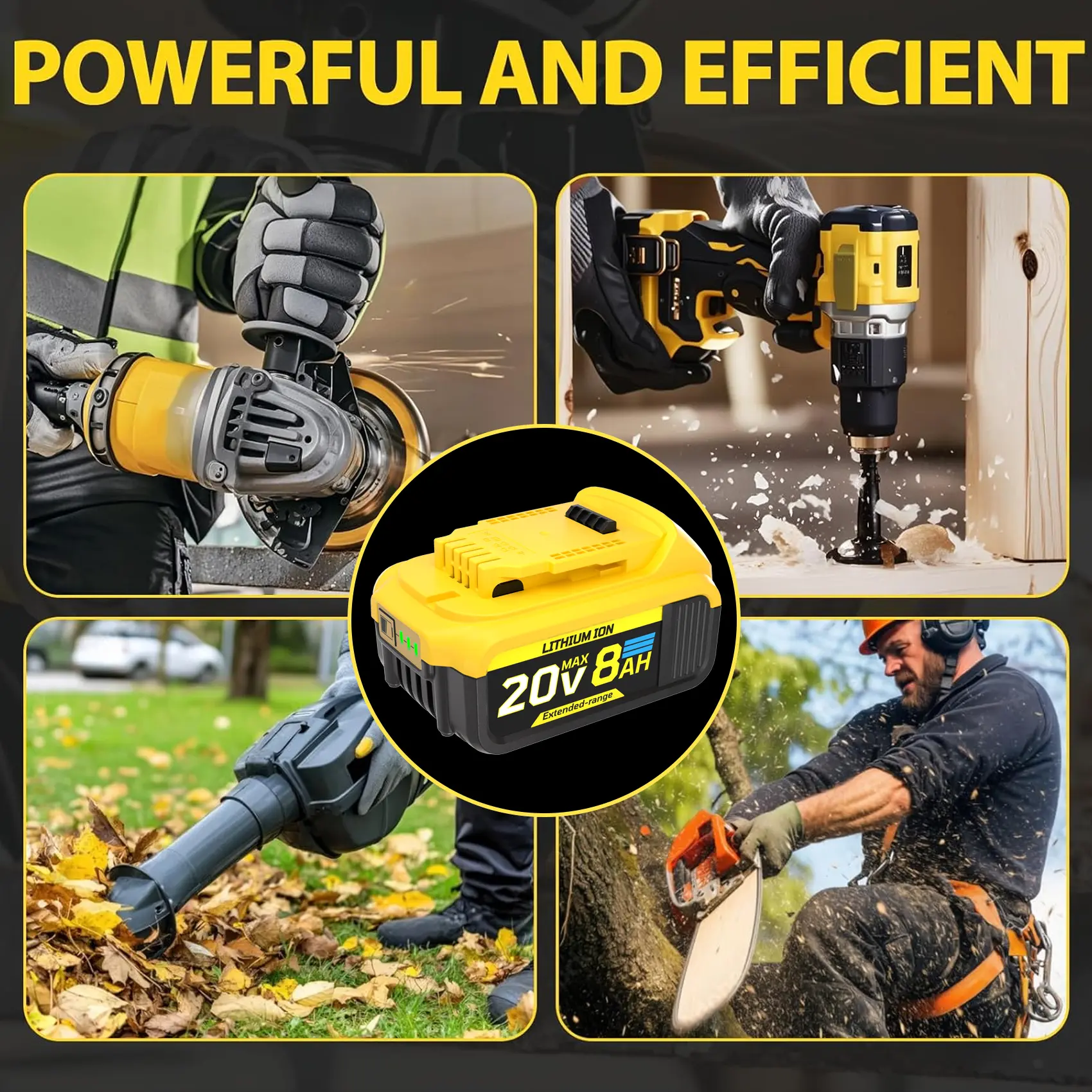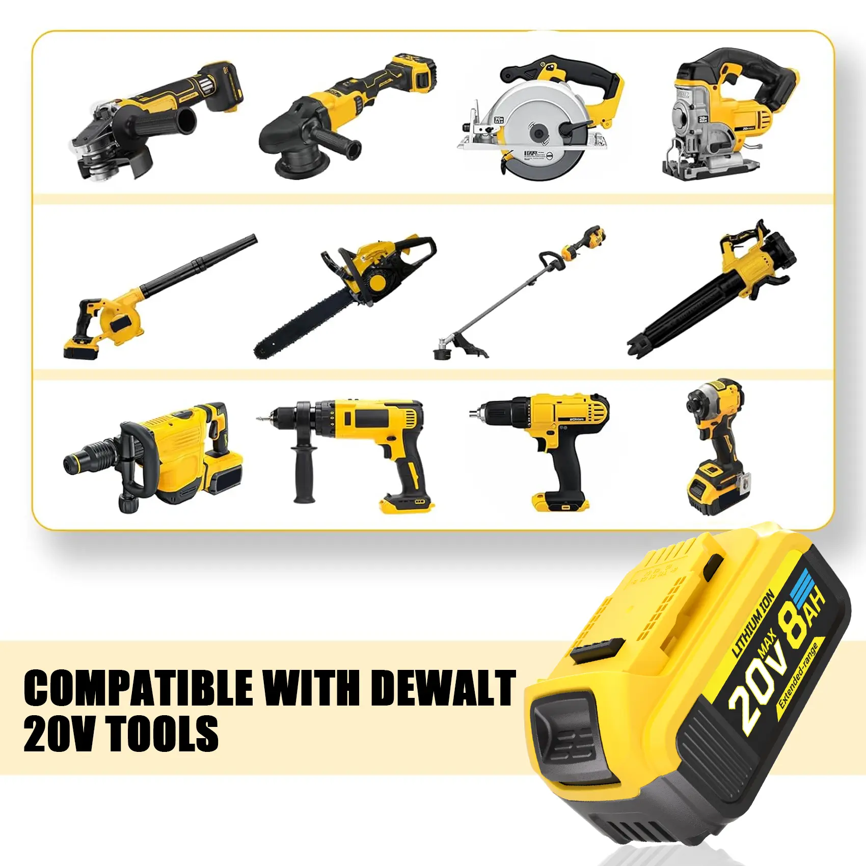 【Perfect Compatibility】Replacement for DeWalt 20V batteries: DCB200 DCB203 DCB204 DCB206 DCB202 DCB210; Compatible with DeWalt 20V DCD/DCF/DCG Series Cordless Power Tools