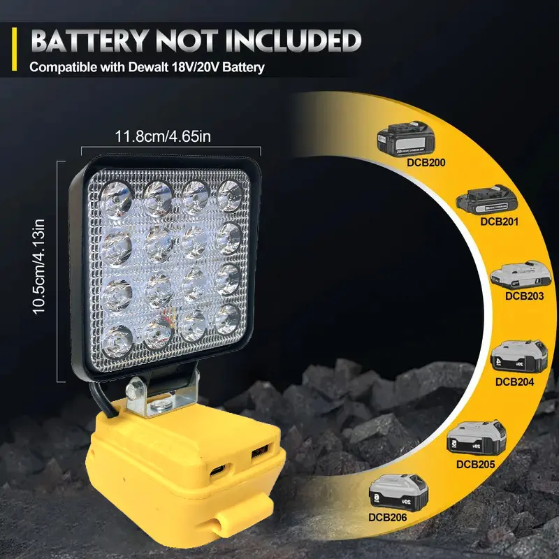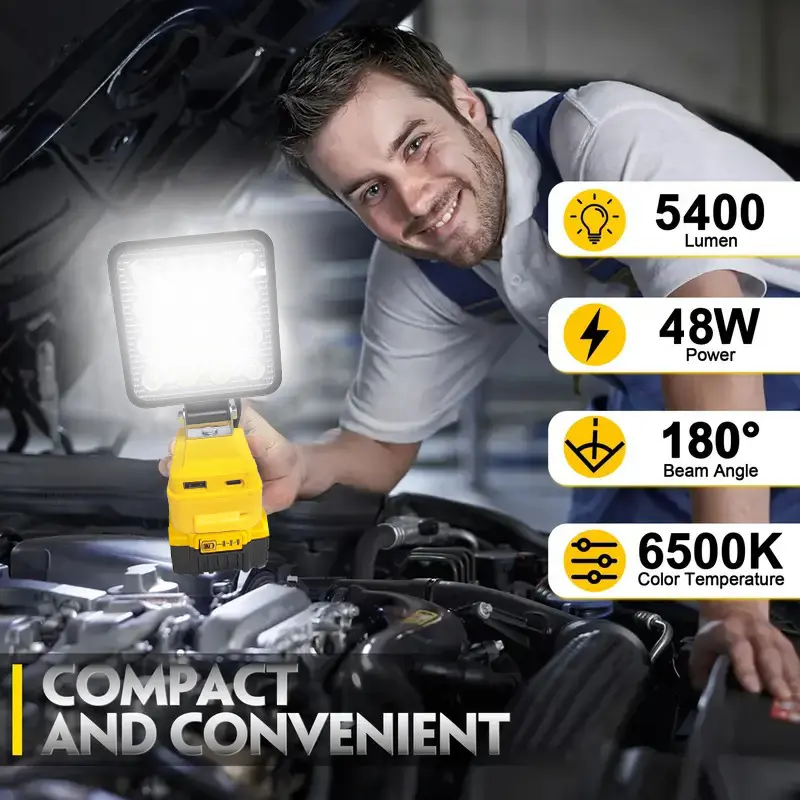 ·Compatible with Dewalt 20V MAX Batteries: This LED work light is designed to work seamlessly with Dewalt 20V MAX batteries. Perfect for those who use these batteries for their tools. 🛠️