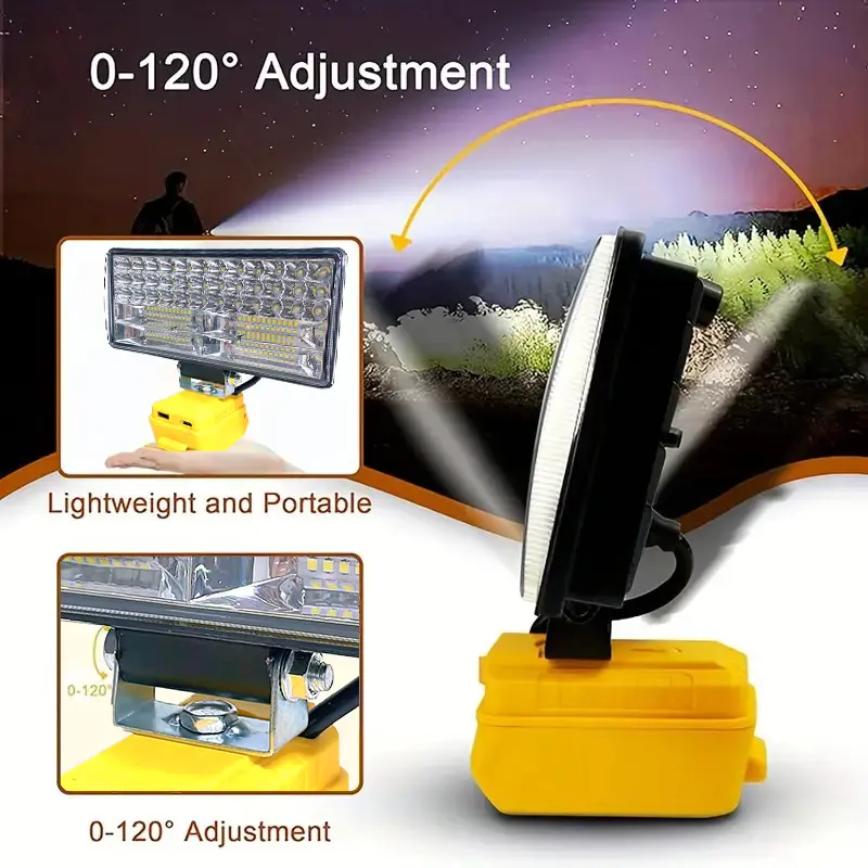 Adjustable LED Work Light Compatible With Dewalt 20V MAX Batteries . Ideal For Outdoor Use, Camping, Car Repairs, Emergency Situations, And Job Site Lighting Adjustable Angle Design (Battery Not Included)