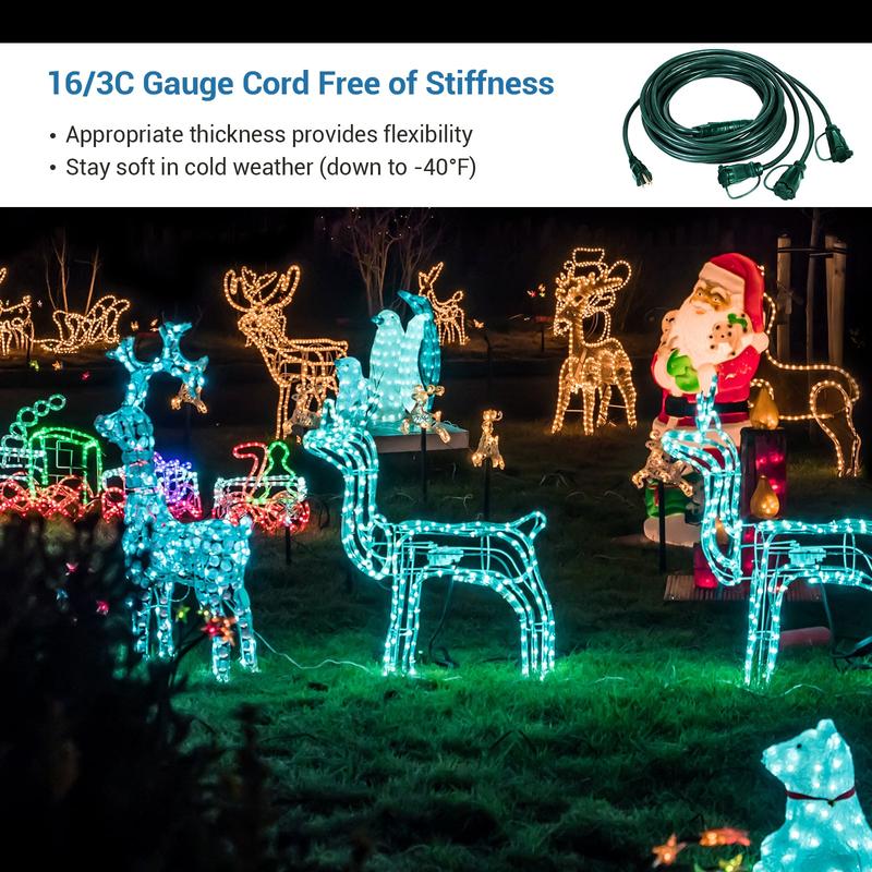 ·Green 3-way Power Cord Splitter: Helps use fewer cords for setting up landscape lighting and Christmas decorations.
