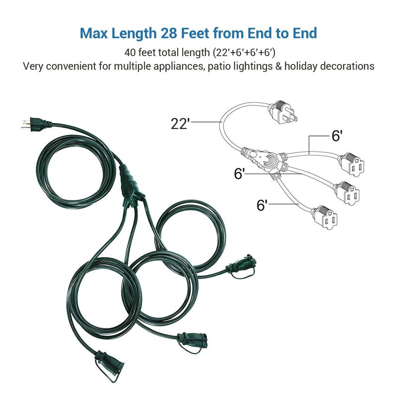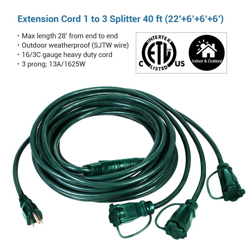 ·40 Feet 3 Outlets Outdoor Extension Cord Splitter