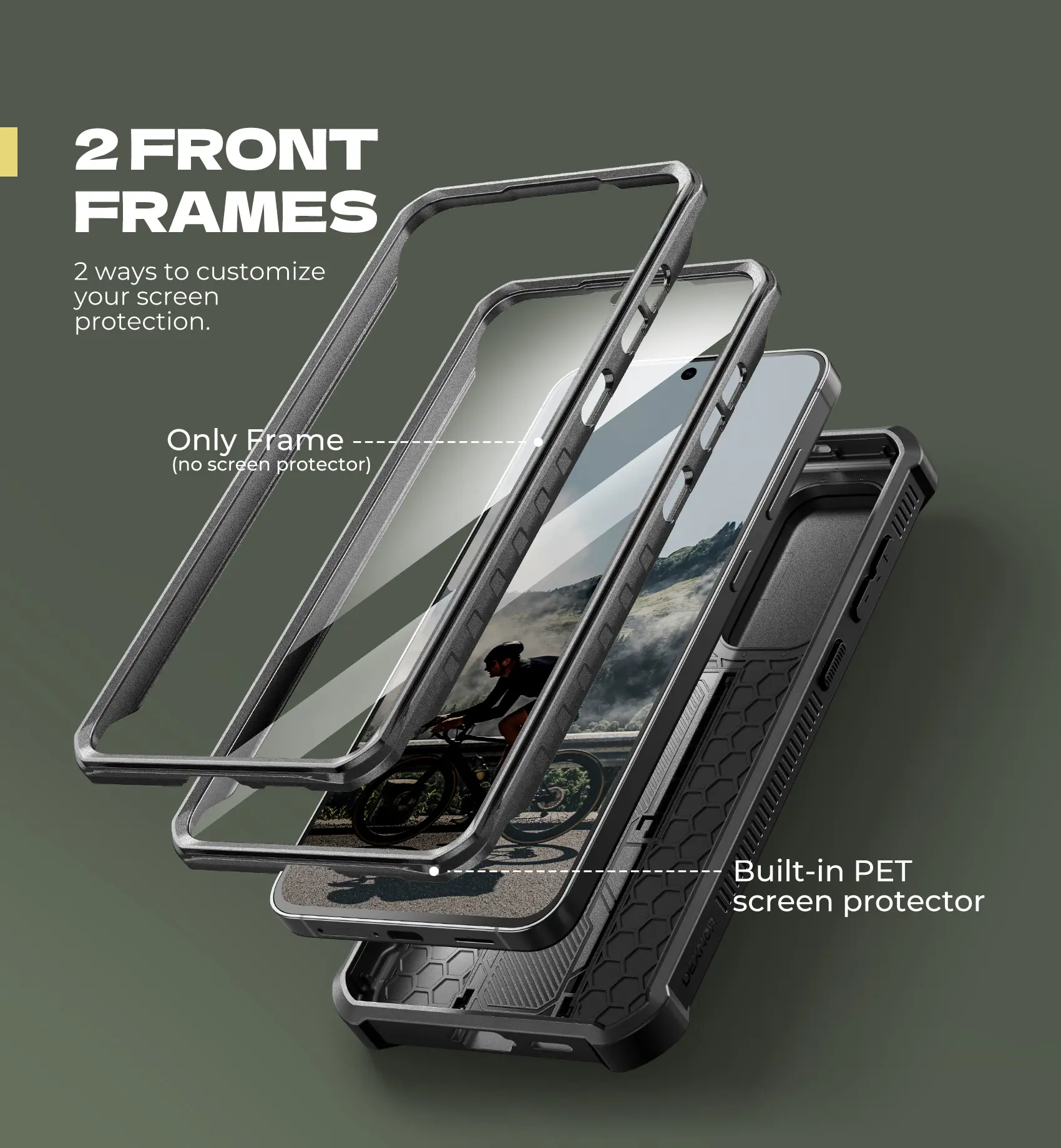 ·Select from 2 front frames: Enjoy double-layered screen protection with our case's built-in PET screen protector or your own, complemented by raised edges for enhanced defense against scratches and spills, ensuring your screen stays pristine in any situation.